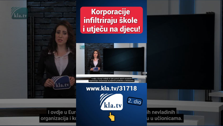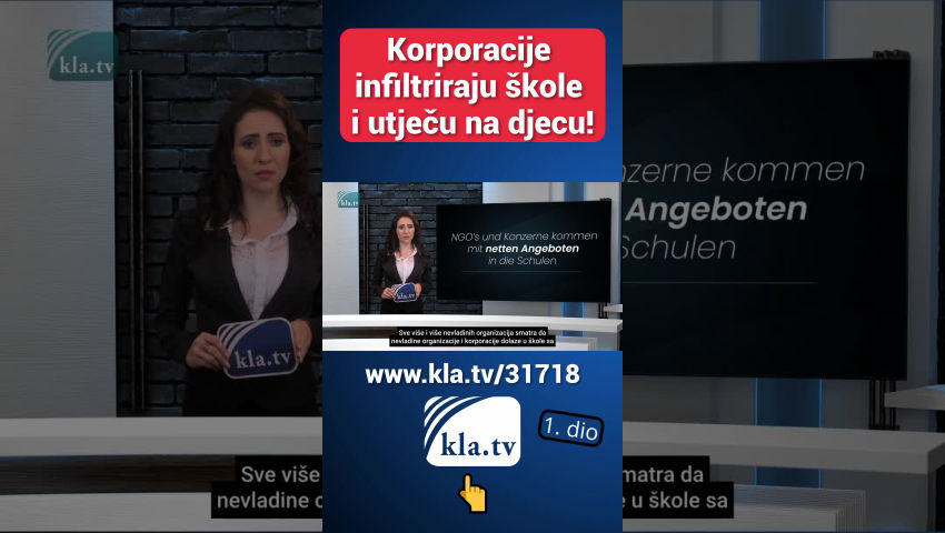 U dokumentarnom filmu “Hibridni rat protiv naše djece” [www.kla.tv/30526] dojmljivo pokazuju kako sa svih strana se na djecu svjesno utječe u njihovom razvoju. Ovaj utjecaj ne staje ni pred vratima škole. Sve više i više nevladinih organizacija smatra da nevladine organizacije i korporacije dolaze u škole sa lijepim ponudama na radost djece i kao olakšanje učitelja. Stvarno? Je li ponuda u skladu s postignutim ciljem?