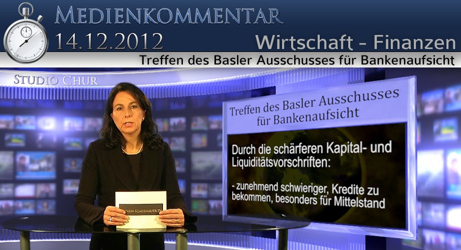 Herzlich willkommen zum heutigen Medienkommentar über das Treffen des Basler Ausschusses für Bankenaufsicht. Gestern und heute fand in Basel das zweimonatliche Treffen des Basler Ausschusses für Bankenaufsicht statt. Ort des Geschehens „die Bank für internationalen Zahlungsausgleich“, die von den Bänkern als „die Zentralbank für die Zentralbanken“ bezeichnet wird. Im Ausschuss dabei ist der Präsident der Europäischen Zentralbank, Mario Draghi, der Chef der FED, Ben Bernanke, weiter auch die Chefs der Zentralbanken von Indien, China, Mexiko, Brasilien und ein paar anderen Ländern. Thema des Treffens war das umstrittene „Basel drei Regelwerk“, welches die deutsche Bundesregierung am 22. August 2012 im Eilverfahren verabschiedet hatte. Auf den ersten Blick könnte man diesem Regelwerk durchaus etwas Gutes abgewinnen, da es auf der Eigenkapital-sicherung der Kreditinstitute und damit als weiterer Schutz vor möglichen Bankenpleiten gedacht ist. Doch sein wahres Gesicht zeigt es erst beim genaueren Hinsehen. Durch die schärferen Kapital- und Liquiditätsvorschriften wird es zunehmend schwieriger, Kredite zu bekommen. Besonders betroffen ist der Mittelstand. Gerade Selbständige können diese hohen Ansprüche kaum erfüllen. Einzig die Eintragung einer Grundschuld auf reale Güter wie z.B. Grundstücke, Immobilien etc. ermöglicht es, Kredite zu erhalten. Damit wird weiter versucht mit erschaffenem Kreditgeld an die realen Werte der Menschen zu gelangen. Die „Basel drei“ Vorschriften wurden vom Basler Ausschuss 2010 im Zuge der Weltwirtschaftskrise herausgegeben. Solche Beschlüsse, welche für uns alle weitreichende Konsequenzen mit sich bringen, fassen die Notenbänker als, „nicht vom Volk gewählte Agenten“. Der Grund dafür ist, dass die meisten Zentralbanken unabhängig von der Politik agieren. Welcher Staatsmann bringt den Mut auf, wie John F. Kennedy ihn hatte, die Zentralbanken unter staatliche Kontrolle zu stellen? In Japan scheint sich ein mutiger Staatsmann zu finden, Shinzo Abe, der mit großer Wahrscheinlichkeit am Sonntag zum neuen japanischen Premierminister gekürt wird. (Er hatte bereits angekündigt, dass es sein oberstes Ziel sei, die Zentralbank an die Kandare zu nehmen. Wünschen wir ihm von Herzen, dass er dieses Vorhaben nicht mit seinem Leben bezahlen muss.