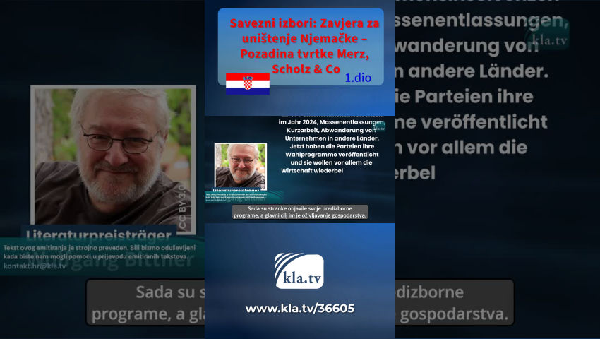 Ili se svi ponašaju kao plaćene ubojice za njemačku industriju? Kla.TV otkriva da se uopće ne radi o teoriji zavjere, već o provjerenoj stvarnosti. Ali: Postoji opravdana nada! Jer neće nadolazeći savezni izbori odlučiti budućnost Njemačke i EU, nego...