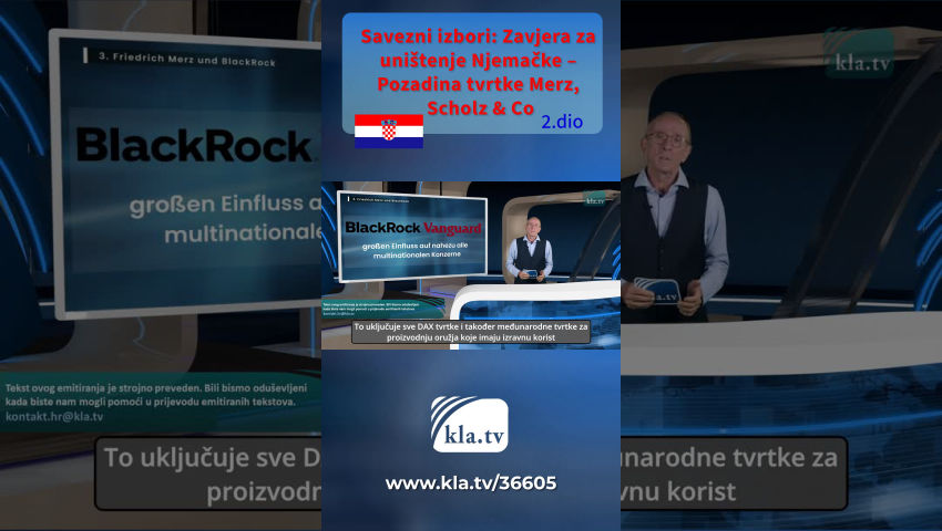 U emisiji “Dosje Olaf Scholz” [www.kla.tv/19846]otkrivena je njegova blizina i mreža s visokim financijama. Znakovito je da je, primjerice, nakon pada semafor vlade Scholz imenovao Jörga Kukiesa za novog ministra financija. Kukies je bivši bankar velike banke Goldman Sachs, čiji je glavni dioničar najveći i najmoćniji svjetski upravitelj imovine BlackRock. S obzirom na to da BlackRock upravlja imovinom superbogatih i zastupa njihove interese, tvrtka sada može izravno utjecati na oblikovanje njemačke financijske politike.