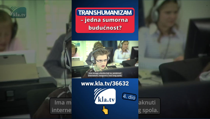 Transhumanizam, tko ga gura naprijed? Voditelj “Auf 1” Stefan Magnet objašnjava u svojoj emisiji “Pravi tajni Plan”: “Posljednjih mjeseci jedna je stvar postala sve jasnija: ideologija transhumanizma šalje se kako bi se izbrisala ljudska vrsta. Izjava da čovjek mora biti prevladan je gruba bezopasnost jer prevladavanje zvuči tako pasivno i beskrvno.” Postoji tvrdnja da je transhumanizam globalna zavjera za uništenje čovječanstva kako bi se prevladali tradicionalni koncepti čovječanstva. Sljedeći program ispitat će u kojoj je mjeri ova izjava istinita. Laura Aboli: Transhumanistički pokret – što znači biti čovjek? Poznata govornica Laura Aboli, jedna stručnjakinja na području transhumanizma, nastupila je u Engleskoj na konferenciji Better Way u Bathu 2023. godine. Njezina izjava o transhumanizmu: “Transhumanizam je samo prijelazna faza u posthumanizam [budućnost bez ljudi]. Krajnji cilj je iztrebljenje čovječanstva kakvog poznajemo. […] Transrodni pokret nije pokret korjena trave, nego dolazi sa samoga vrha. To je jedno zlo koje ide prema transhumanizmu. To nas tjera da propitujemo najtemeljniji smisao ljudskog identiteta, naš spol. Tužna je stvarnost da je ovaj progresivni plan već prouzročio fizičku, mentalnu i psihičku štetu sve većem broju djece i omladine. I postaće samo još gore. Ovo mora biti zaustavljeno! […] Kada ljudi više ne znaju tko su ili što su, kada sebe već vide kao hibride između muškarca i žene, lako će se dati uvjeriti da mogu postati i hibridi između čovjeka i stroja. Jedan kiborg, jedan hibrid nastao od biološkog organizma i stroja. Ovo opisuje ljude čija su tijela, osim mozga, trajno budu nadopunjena mehaničkim komponentama. Transhumanistički pokret – u jednu distopijsku budućnost U drugom dijelu svog govora, gospođa Aboli vrlo jasno kaže: "Jednom kad shvatimo krajnji cilj transhumanizma, mnogo je lakše pogledati unatrag i vidjeti psihološku uvjetovanost, biološku manipulaciju, kulturni odgoj i obrazovnu pripremu kojoj smo bili izloženi desetljećima. Sve su to pripreme za prihvaćanje jedne posthumane budućnosti. Potrebno je mnogo fizičkog i psihičkog zlostavljanja da bi inteligentna vrsta poput naše pristala na vlastito istrebljenje. Većina, ako ne i sve, onoga što se dogodilo u posljednjih 60 godina trebalo bi nas navesti da prihvatimo jednu takvu distopijsku stvarnost. Živimo u jednoj prekontroliranoj matrici. Naša pravo viđenje stvarnosti pomno je planirano, upravljano i izvedeno kako bi nas vodila u smjeru koji oni žele, u jedan posthumani svijet. Da bi se to postiglo, čovječanstvo je prvo moralo biti destabilizirano, dehumanizirano i demoralizirano svim mogućim sredstvima.” Laura Aboli broji sljedeće destabilizirajuće agense: - uništenje srži obitelji - indoktrinacija djece od strane države - Abortus - odricanje Boga - izbrisavanje duhovnosti u obrazovanju i kulturi - život u velegradovima, daleko od prirode - zatrovana hrana, zrak i voda - društveni mediji koji zamjenjuju stvarne ljudske veze i interakcije - umjetno izazvana financijska kriza i oporezivanje - beskrajni ratovi i masovne migracije - stres, strah, depresija, droge i alkohol - kao i stalno širenje straha i moralni relativizam kao nova religija. “I mogao bih unedogled pričati o tome kako je čovječanstvo bilo pod utjecajem i prisiljeno da se udalji od svega što nam daje snagu, sigurnost, smisao i svrhu. Slabo, nemoralno, nepovezano, neuko i nezdravo stanovništvo laka je meta za sljedeću fazu, a to je stvaranje cijele generacije androginih (mješavine muškog i ženskog) bića. Muškost je pod psihološkim, kulturnim i biološkim napadom. Žene se u sportu, zabavi i politici zamjenjuju muškarcima koji se pretvaraju da su žene. A djecu će u školama učiti da je spol samo jedan izbor.” To je ono što Laura Aboli kaže o transhumanističkom pokretu. Na kraju ovog programa čut ćete kratku reportažu o stvarnoj opasnosti digitalnih medija za djecu, koju je učiteljica nedavno poslala Kla.TV-u o događanjima u svojoj školi: “Mislim da je VRLO važno da se objavi trenutna razina dezorijentiranosti među djecom – o najgoroj stvari koja se AKUTNO događa gotovo SVOJ djeci! Ima mnogo učenika koji su, potaknuti internetom, nesigurni u vezi svog spola. Sljedeći korak: oni su depresivni i nezadovoljni – i počine samoubojstvo ili ga pokušaju učiniti. Sve potaknuto i vođeno sa internetom. A tu su i svi tipovi... koji igraju online računalne igrice SATIMA. Sastaju se naravno... ali ne rade gotovo NIŠTA osim toga. Umor im se očituje na licu, a pozornost na lekciju opada.” Ovo svjedočanstvo potvrđuje izjave Laure Aboli i sve nas poziva na akciju. Tjera nas da se probudimo i uvidimo opasnosti kojima su djeca i omladina izloženi. Roditelji koji vjeruju da svojoj djeci moraju dopustiti sve što je “moderno” i “progresivno” moraju shvatiti da njihova djeca trebaju njihovu zaštitu.