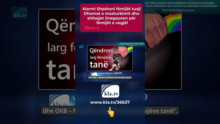Kla.TV ka treguar në detaje sfondin e këtij koncepti të riedukimit seksual në emisionin “OBSH dhe OKB – Mbajini pedofilët larg fëmijëve tanë”. Studioni këtë video të rëndësishme të transmetuar në dritën e këtyre zhvillimeve dramatike!