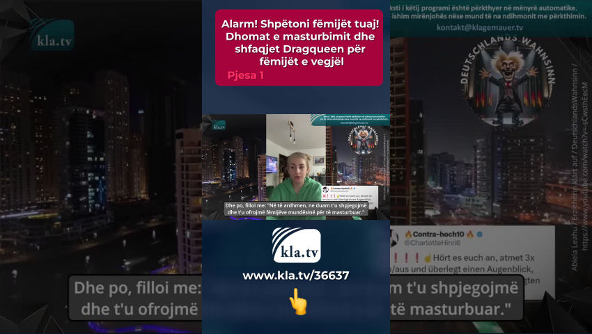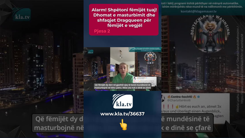 Ndjeni brenda vetes: Çfarë mendoni kur imagjinoni një fëmijë 4-vjeçar? Ndoshta në mendjen tuaj shihni një fëmijë duke luajtur ose duke u përqafuar nga nëna e tij. Ju gjithashtu mund të shihni fëmijë duke luajtur në një grup ose sytë e mëdhenj kureshtarë të një fëmije që mëson për botën. Ajo që ndoshta nuk ju shkon mendja në lidhje me fëmijët e vegjël janë skenat e mëposhtme. Këto skena janë shfaqje publike të Dragqueen, veçanërisht për fëmijët shumë të vegjël. Këto shfaqje janë tani në shumë vende të botës, përfshirë Gjermaninë. Nën maskën e tolerancës dhe pranimit të të ashtuquajturit diversitet gjinor, fëmijët tanë supozohet të jenë të përgatitur për një tëe "ardhme plot ngjyra". Megjithatë, nuk përmend dëmet që këto shfaqje mund të shkaktojnë në shpirtin e fëmijëve. Punonjësit e mbrojtjes së fëmijëve dhe punonjësit socialë paralajmërojnë urgjentisht që fëmijëtkëto shfaqje mund të jenë jashtëzakonisht shqetësuese dhe ndoshta shumë traumatizuese. Edukatorja e jetës dhe sociale Margreth Tews raporton mbi praktikën e saj profesionale në një intervistë. Bëhet fjalë për pasojat e ballafaqimit shumë herët me temën e seksualitetit. Duke u prezantuar fëmijëve tema të tilla si transeksualiteti dhe rrjedhshmëria gjinore, dikush do t'i "privojë ata nga zhvillimi i tyre natyror". Kjo çon në pasiguri masive dhe probleme të sjelljes tek fëmijët. Këto shpesh trajtohen më tej nga psikologë dhe terapistë. "Kjo krijon një problem pas tjetrit," tha Tews. Leximet e librave të Dragqueen për fëmijët e kopshteve janë zhvilluar në shumë qytete të Gjermanisë prej vitesh. Ato janë pjesërisht të vendosura në mënyrë të vendosur në jetën publike të qytetit dhe zbatohen rregullisht në institucionet arsimore. Atje, fëmijët përballen me Dragqueens të veshur me grim të ndezur dhe shpesh me veshje të seksualizuara. Librat që lexojnë atje shpesh trajtojnë temën e personave transgjinorë. Në gjuhë të thjeshtë, kjo do të thotë fëmijë ose kafshë që nuk ndihen rehat në gjininë e tyre natyrore dhe duan të ndryshojnë në gjininë tjetër. Në faqen e internetit të shoqatës “Demo për të gjithë” mund të gjeni informacione të bazuara mirë mbi këto të ashtuquajtura “orë leximi”. Aty thuhet: “Disa nga artistët janë para së gjithash aktivistë dhe kanë lexuar klasikët e ideologjisë gjinore. Ata e kuptojnë se çoroditja e seksualitetit dhe identitetit gjinor është mjeti i zgjedhjes për "infiltrimin subversiv" [subversiv = gërryes/destruktiv/revolucionar] [e rendit shoqëror]. Axhenda e tyre nuk është një konspiracion i fshehtë, por përkundrazi ajo ndjek "metodologjinë shkencore", e cila mund të lexohet në artikullin "Drag pedagogji: Praktika lozonjare e fantazive queer në edukimin e hershëm" të fëmijërisë. Synimi është të ankorojë thellë pedagogjinë queer në institucionet arsimore për fëmijët dhe të thyejë stereotipet e mësuesve dhe të gjitha rregullat dhe kufijtë në përgjithësi.“ Në këtë pikë le t'i kthehemi lojës së mendimit në fillim të programit. Pyesni veten: Çfarë ju vjen në mendje kur mendoni për nevojat më të rëndësishme të një fëmije të vogël? Dashuria, siguria, kujdesi, hapësira për t'u zhvilluar lirisht, koha për të luajtur, ... mund të jenë gjërat që ju mendoni. Sidoqoftë, nëse dëgjoni të ashtuquajturit ekspertë nga "Qendra Federale për Edukimin Shëndetësor", ju merrni një listë krejtësisht të ndryshme: Fëmijët mes moshës zero dhe katër janë qenie seksuale. Ata duhet të edukohen për "masturbimin e hershëm të fëmijërisë" dhe të mësojnë se si të përjetojnë "kënaqësi dhe kënaqësi" kur "prek trupin e vet". Ata duhet të zbulojnë “trupat dhe organet gjenitale” dhe të përjetojnë “përvoja të këndshme të afërsisë fizike”. Fëmijët katërvjeçarë duhet të jenë në gjendje të interpretojnë “ndjenjat seksuale” si afërsia, dëshira dhe zgjimi. Kjo nuk është thjesht një teori, por tashmë po zbatohet në Gjermani dhe vende të tjera në emër të OKB-së. Më poshtë është raporti i një gruaje të re që filloi një vit social vullnetar (FSJ) në një kopsht fëmijësh. Megjithatë, asaj iu desh të largohej herët nga kopshti sepse nuk ishte dakord me konceptin e edukimit seksual që zbatohej atje. Tani ju tregojmë një fragment të shkurtër nga video-raporti i tyre: “Një ditë erdhi një grua nga një organizatë e caktuar ndihmëse e cila është e njohur – nuk do ta emëroj. Kjo organizatë ndihmëse ka një logo blu. Dhe e gjithë kjo ndodhi në Rhineland-Pfalz, në kufirin me Baden-Württemberg. Erdha në çerdhe, krejt normalisht dhe atë ditë erdhi një grua nga kjo organizatë ndihmëse dhe prezantoi planin e ardhshëm për të gjitha çerdhet në Gjermani. Do të thotë se kjo tashmë ishte vendosur dhe konfirmuar. rezultati u paraqit vetëm proforma, si të thuash. Dhe po, filloi me: "Në të ardhmen, ne duam t'u shpjegojmë dhe t'u ofrojmë fëmijëve mundësinë për të masturbuar". Unë u trondita plotësisht, plotësisht i tronditur! U skuqa, isha i nxehtë, kështu që mendova: Çfarë dreqin po ndodh këtu? Çfarë është kjo, diçka e tillë? Absolutisht i sëmurë!! Shikoj djathtas, majtas... Meqë ra fjala, një nga gratë e edukatoreve ishte pastor... Të gjithë ishin plotësisht të kënaqur, plotësisht të lumtur, "ne mendojmë se është e mrekullueshme, uau"… Isha sikur, Mirë, kjo nuk mund të jetë e vërtetë, apo jo? Dhe pastaj ajo na thotë… – dhe në fakt, në këtë çerdhe kishte një dhomë sportive ku fëmijët bënin gjimnastikë dhe ishte mjaft e madhe. Dhe pastaj ata thanë, kjo grua nga organizata e ndihmës tha: "Ajo që mund të bëni, për shembull, është që mund ta ndani këtë dhomë, këtë dhomë sportive, në gjysmë dhe të blini tenda, tenda
