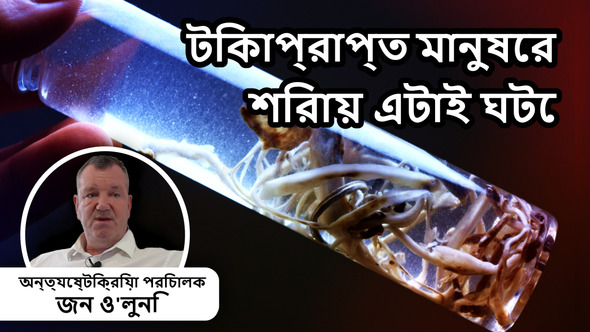 [জন ও'লুনি:] কখনোই না! আমি কখনও এমন কিছু দেখিনি যা এই "জিনিস" এর সাথে দূর থেকেও সাদৃশ্যপূর্ণ! যখন কেউ নার্সিংহোমে মারা যেত, তারা ডাক্তারকে ফোন করত, যিনি মৃতদেহটি তুলে নেওয়ার জন্য আন্ডারটেকারকে ডাকতেন। আমি আধ ঘন্টার মধ্যে সেখানে পৌঁছে গেলাম। তাই আমি মৃত ব্যক্তির মৃত্যুর এক ঘন্টার মধ্যে তাকে অভিষেক করার প্রক্রিয়ায় ছিলাম। মৃত্যুর পর যদি এগুলো গজাতো, তাহলে মৃত্যুর এক ঘন্টার মধ্যে এগুলো অবশ্যই এই সাদা পিণ্ড দিয়ে পূর্ণ হত না। তুমি মারা গেলে তোমার শরীরে কিছুই জন্মায় না। কিছুই না! ক্ষয়, ছত্রাক, হয়তো কোন ধরণের ছত্রাকের বীজ জন্মাতে পারে যখন তুমি পচতে শুরু করবে এবং আমরা যে মাটি থেকে এসেছি সেখানে ফিরে যাব। এটি একটি প্রাকৃতিক প্রক্রিয়া। আপনার ধমনীতে সাদা "জিনিস" কোনও প্রাকৃতিক প্রক্রিয়া নয়! আর টিকা চালু হওয়ার আগে আমি এরকম কিছু কখনও দেখিনি! ২০২১ সালের মাঝামাঝি পর্যন্ত নয়। আর এখন আমি একদল আন্ডারটেকার এবং এম্বালমারের সদস্য, সংখ্যাটা ক্রমশ বাড়ছে, যারা সবাই ঠিক সেটাই দেখার কথা বলে। রিচার্ড হির্শম্যান এবং আরও অনেকে। [ভিভা ফ্রেই (ইংরেজি) এর সাথে একটি সাক্ষাৎকারে এম্বালমার রিচার্ড হির্শম্যান: