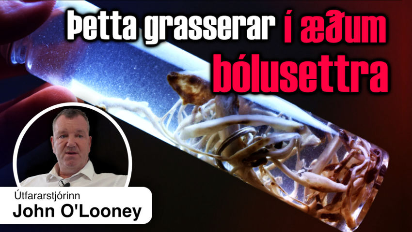[John O'Looney:] Aldrei! Aldrei! Og ég er með BIE skráðan líksmyrjara sem hefur smurt í 25 ár sem hefur aldrei séð þetta heldur. Né heldur ótal aðrir læknar og smyrjara sem ég hef talað við. Mér er nú boðið á fundi í hverri viku, netfundi með fagfólki, allt að 100 þátttakendum. Þeir sjá allir það sama. Því miður er þetta of seint fyrir marga.