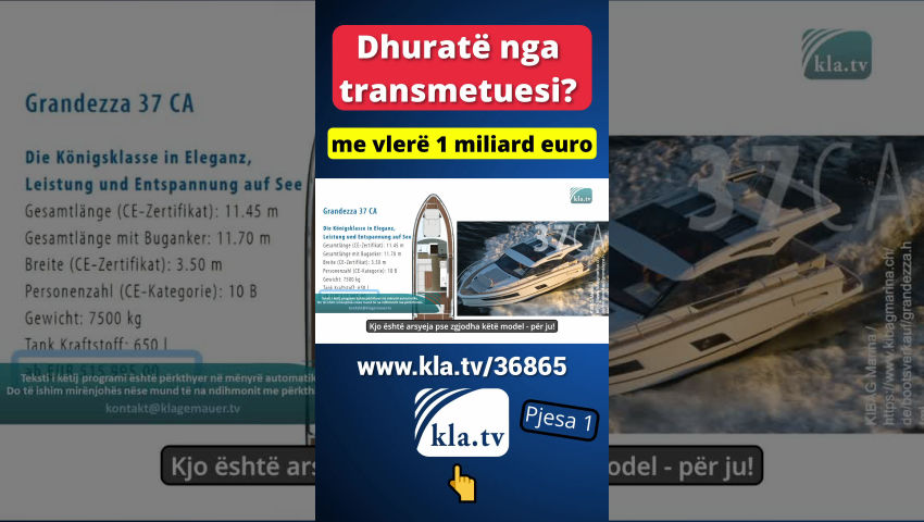 Kush nuk do ta dëshironte këtë? Një vilë ëndrrash, një varkë luksoze, një makinë fantastike dhe 11 milionë euro shtesë cash në llogarinë tuaj? Pastaj kapeni sot! Sepse Kla.TV ju jep mbi 20000 programe shpërthyese mbi historinë bashkëkohore me vlerë mbi 1 miliard euro. Këto janë krijuar me shumë pasion dhe përkushtim të madh nga ekipe vullnetare të prodhimit nga e gjithë bota, të cilët punojnë orë të panumërta për një transmetim të vetëm. Shtojini kësaj pajisjet teknike, zhvillimin e IT-së, trajnimet, takimet, etj. A nuk është ky thesar i paçmuar? Dhe për përdorim të lehtë, "Kla.TV Downloader" i ri është i përfshirë pa pagesë. Pra, merrni historinë e vërtetë në kompjuterin tuaj sot.