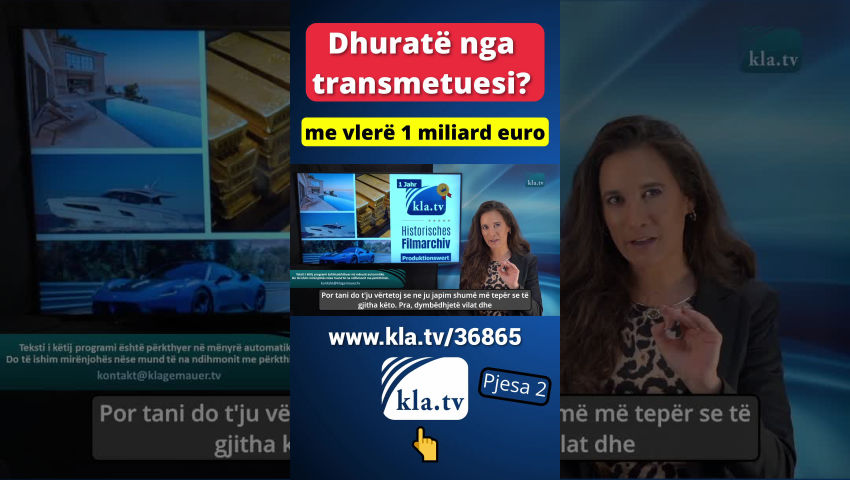 falas. Por unë ju them sot se është e vërteta. Po ju them, nuk është metaforë. Kjo është me të vërtetë për vlerën reale. Këtë shumë që ta kam dhënë tani me vilën, me varkën, me makinën cool dhe me paratë në llogarinë tuaj. Kjo përkon me vlerën e prodhimit të vetëm një viti të transmetimeve të Kla.TV. Tani ju i merrni të gjitha emisionet e Kla.TV sot falas. Dhe Kla.TV ka mbi dymbëdhjetë vjet që ekziston. Dhe e gjithë kjo nuk përbëhet vetëm nga vlera e prodhimit të transmetimeve të KLa.TV. Unë do të kthehem në atë më vonë. Por tani do t'ju vërtetoj se ne ju japim shumë më tepër se të gjitha këto. Pra, dymbëdhjetë vilat dhe dymbëdhjetë Maserati dhe dymbëdhjetë varkat luksoze dhe dymbëdhjetë herë njëmbëdhjetë milionë euro. Tani do ta vërtetoj shkurtimisht këtë - dhe, e them përsëri, me të vërtetë nga dashuria. Por ne njohim vetëm mashtrime rreth nesh. Ne njohim vetëm shfrytëzimin sot. Dhe kjo është arsyeja pse askush nuk mund ta shohë atë, edhe nëse një gjë e tillë ekziston vërtet. Dhe nëse kjo është vërtet e vërtetë, atëherë nuk mund ta vlerësoni më atë që po ndodh në të vërtetë këtu. Dhe kjo, të dashur shikues, kjo është pikërisht ajo që supozohet të ndryshojë tani. Dhe unë do t'ju tregoj menjëherë pas sot se si mund të bëheni pjesë e kësaj mrekullie më të madhe të kohës sonë. A po bashkoheni?