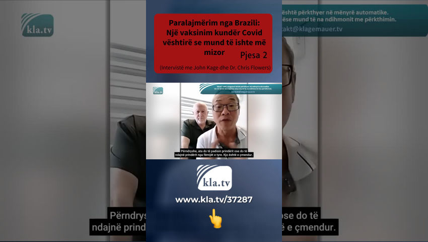 [Intervistuesi:] Sot flasim me John Kage dhe Dr. Chris Flowers. John Kage është një aktivist kryesor brazilian për lirinë mjekësore. Ai është në krye të përpjekjeve për të mbrojtur fëmijët nga tirania mjekësore dhe për të informuar botën për atë që qeveria braziliane po bën tani. Dr. Chris Flowers është radiolog, autor dhe censor i revistës akademike në pension. Ai drejton hetimin mjekësor të War Room/DailyClout për dokumentet e Pfizer. Si rezultat i këtyre hetimeve, Pfizer u detyrua me kërkesën e gjykatës të publikonte këto dokumente të provës së vaksinës. Grupi i tij i ekzaminoi këto dokumente me mijëra vullnetarë, duke përfshirë shumë ekspertë, për t'i sjellë publikut përmbajtjen. Faleminderit që u bashkuat me ne sot! [John Kage:] Faleminderit, Kla.TV. Është kënaqësi të jem këtu. Faleminderit që na dhatë mundësinë të raportojmë për atë që po ndodh këtu në Brazil. Intervistuesi: E mrekullueshme. Jemi të lumtur dhe është një nder për ne. Le të fillojmë me ju, John. Na jepni një përditësim mbi kërkesat e vaksinimit kundër COVID për fëmijët e vegjël në Brazil, foshnjat dhe të vegjlit. [John Kage:] Po, këtu në Brazil ne aktualisht kemi një kërkesë për vaksinim për foshnjat gjashtë muajshe deri tek fëmijët pesë vjeç, në mënyrë që ata të mund të shkojnë në shkollë. Por ende po përkeqësohet. Nëse prindërit refuzojnë të vaksinojnë fëmijët e tyre me terapi gjenetike Covid, autoriteti i kujdestarisë dhe prokuroria publike do t'i padisin prindërit dhe do t'u dërgojnë atyre një njoftim përkatës. Dhe këtu në Brazil, unë njoh prindër që duhet të paguajnë 30,000 dollarë gjobë. Nënat e tjera ngarkoheshin me 1000 dollarë në ditë. Dhe unë njoh një nënë tjetër që sapo kishte katër makina policie para shtëpisë së saj. Ata morën me vete fëmijët e tyre, katër fëmijë, dhe u dhanë shtatë vaksina të nesërmen. Të gjithë fëmijët kanë pësuar dëmtime dhe lëndime. Pra, kjo po ndodh kudo në Brazil. Por në Santa Catarina dhe Parana ka një koalicion më të fortë në zyrën e prokurorit publik. Prandaj organizova këto dy dëgjesa publike atje. Kjo është e çmendur. [Intervistuesi:] Pra, ju po thoni që edhe nëse prindërit mund të shmangin disi shkollën, tani nuk ka rëndësi. Ju do të merrni fëmijët tuaj me vete. [John Kage:] Po. Po, po, po. Dhe tani ata po padisin prindërit. Tani ata kërkojnë dënim nga prindërit. Dhe thonë se edhe nëse paguajnë gjobën, duhet të vaksinohen me terapi gjenetike. Përndryshe, ata do të padisin prindërit ose do të ndajnë prindërit nga fëmijët e tyre. Kjo është e çmendur. Çfarë po ndodh këtu në Brazil. Brazili është i vetmi vend në botë që e bën këtë me fëmijët. [Intervistuesi:] Dhe këto shuma dollarësh që po më thoni do të ishin astronomike në Shtetet e Bashkuara. Unë imagjinoj se në Brazil është thjesht... Dua të them, duhet të qeshësh për këtë. Askush nuk mund të përballojë 1000 dollarë në ditë. [John Kage:] Po. Prokuroria publike po ashtu – nëse disa prindër kanë vërtetim mjekësor se fëmija i tyre nuk lejohet të marrë vaksinën kundër COVID… [Intervistuesi:] Po, një vërtetim i paaftësisë për vaksinim. [John Kage:] Ministria thjesht thotë se nuk i besojmë certifikatës së këtij mjeku. Kështu që ju duhet të vaksinoni fëmijën tuaj brenda dy javësh - në dy javë. Përndryshe ju do të duhet të paguani ose ne do t'ju padisim. Ata nuk pranojnë rekomandimet e mjekëve. Ata nuk i pranojnë. [Intervistuesi:] Po. Kjo tingëllon si rregulloret e Kalifornisë për steroidet. Dhe a mendoni se Brazili, për shembull, kushdo që është në nivelin më të lartë të globalistëve apo kushdo që qëndron pas kësaj, mendoni se po e përdorin Brazilin si një lloj derri gini? A jeni derra gini të botës? [John Kage:] Po, e dini, Brazili është për fat të keq një pionier i Axhendës 2030. Vitin e kaluar, në gjysmën e parë të vitit, Ministri ynë i Mjedisit dhe Ministri ynë i Shëndetësisë ishin në Davos në WEF, dhe ata njoftuan në skenë se Brazili do të bëhej lider në imunizimin e njerëzve dhe gjithashtu në luftimin e ndryshimeve klimatike. Për mendimin tim, kjo është arsyeja pse ata po gjuajnë fëmijët tanë këtu. Sepse Brazili do të jetë baza e radhës e rendit të ri botëror. Kjo është arsyeja. […] [Intervistuesi:] Mirë, Dr. Flowers, kështu që ju jeni me shpresë. Ata janë disi optimistë për perspektivat tona me qeverinë e re. [Dr. Chris Flowers:] Unë mendoj se po, pjesërisht, duhet të jem shumë i qartë këtu: Unë aplikova në FDA, ndoshta nën drejtimin e Robert F. Kennedy Junior. Si dikush që ka kryer prova klinike për më shumë se 40 vjet, është misioni im të sjell transparencë radikale në të gjitha provat klinike. Pasi të eliminojmë ndikimin e Big Pharma në rregullimin e Big Pharma. E dini, të gjithë duhet të kenë akses në të dhënat klinike, veçanërisht kur taksapaguesi amerikan, domethënë ju dhe unë, kemi paguar për zhvillimin e këtij produkti Pfizer. Pra, ata nuk mund të thonë më, mirë, kjo është e mbrojtur, dhe ne duhet t'i kthejmë paratë tona së pari, siç ka bërë gjithmonë Big Pharma në të kaluarën. E dini, unë mendoj se gjërat po ndryshojnë dhe për të qenë i qartë, mendoj se Robert F. Kennedy Jr. i trazoi pak gjërat në seancat që ndoqa nga afër. Dhe unë mendoj se mund të ketë kohë të mira përpara, por ne kemi një detyrë shumë të madhe përpara nesh për të pastruar rrëmujën që është krijuar gjatë shumë dekadave në të cilat farma e madhe ka kontrolluar në thelb rregullatorët. [Intervistuesi:] Oh, është fantastike që po flas me ty dhe po thua se mund të kesh një pozicion në fushën e tij të përgjegjësisë sepse... [Dr. Chris Flowers:] Le të themi se aplikova sepse lëvizja MAHA hapi një portal pas zgje