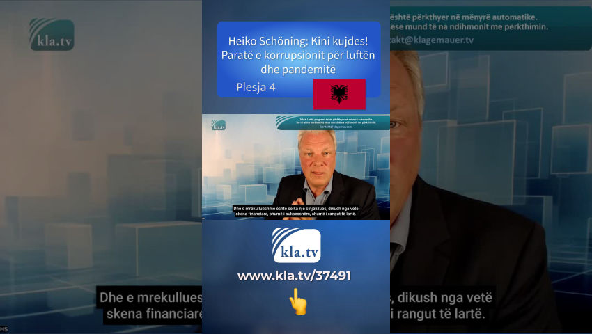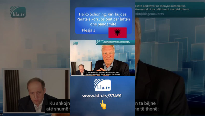 [Heiko Schöning:] E gjithë kjo synon të na paraqesë fakte të rreme. Bëhet fjalë për mashtrim. Dhe sigurisht, duhet të na bëjnë të pëlqejmë, të themi kështu. Sepse mënyra më e mirë për ta bërë këtë është me para. Për shumë njerëz që nuk janë ende plotësisht të përshpejtuar në lidhje me këtë temë, ose që nuk kanë asnjë shqetësim që thjesht të hedhin të gjithë shkencën e mirë dhe të gjithë ilaçin e mirë nga dritarja dhe të vaksinohen. Dhe fitoni shumë e shumë para me të. Ne e pamë këtë në Gjermani në praktikat e fokusuara në Korona dhe në mjekët e praktikës private. Ne e pamë këtë në spitalet që merrnin tarifa të tepruara, d.m.th., shumë mbi mesataren, tarifa fikse kur kishte një bashkëdiagnozë të Covid-19. Po, nëse ato do të ishin të lidhura edhe me ventilatorë - gjithashtu plotësisht jomjekësor. Pastaj ju merrni 38,000 dollarë të tjera në SHBA, për shembull, e kështu me radhë. Modeli aktual pas tij është se shumë njerëz tërhiqen nga krimi.