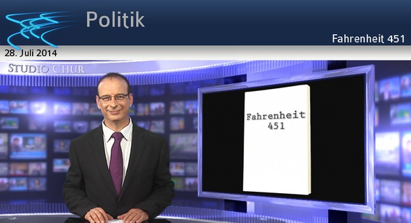 Sehr geehrte Zuschauerin, sehr geehrter Zuschauer, ich begrüsse Sie bei Klagemauer-TV. Ray Bradbury war ein amerikanischer Drehbuchautor und Schriftsteller. Seine Schwerpunktthemen liegen im Bereich Phantastik, Horror und Sience Fiction. Er verstarb im Juni 2012 im Alter von 92 Jahren in Los Angeles. 1953 erschien sein berühmtester Roman. Ein Roman der zwar in der Zukunft spielt, aber als Anti-Utopie gilt. „Fahrenheit 451“ beschreibt einen Staat, in dem das Lesen von Büchern strengstens verboten ist, weil diese zum selbständigen Denken anregen. Das freie und unzensierte Denken gilt als gefährlich. Die Menschen sollen unmündig bleiben. Durch TV-Shows, Drogen, schnelle Autos, Vergnügungsparks und ständige Radioberieselung wird unentwegt von wichtigen Ereignissen abgelenkt. So findet zum Beispiel ein bevorstehender Krieg in den staatlich gelenkten Medien keine Erwähnung. Kommt Ihnen das jetzt irgendwie bekannt vor? Das wirklich Aufrüttelnde an dieser Romanhandlung ist jedoch, dass die Bürger selbst die Verantwortung dafür tragen, dass Bücher verboten wurden. Durch ihre steigende Vergnügungssucht, insbesondere übrigens durch das Fernsehen, hatten sie gar kein Verlangen mehr nach mündigem Nachdenken und Handeln. (So zwischen Klammern vielleicht noch erwähnt: Gilt fernsehen vielleicht doch schon als betreutes Denken?) Erst darauf hin hat die Regierung nämlich das Lesen verboten. Wir möchten hier einfach aufzeigen, dass wir in vielerlei Hinsicht genau dasselbe Verhalten wie die Bürger aus „Fahrenheit 451“ an den Tag legen. Durch unser mangelhaftes Hinterfragen, durch unsere Mutlosigkeit und durch all die Ablenkungen haben wir bei Entwicklungen, die der Menschheit massiv schaden, lediglich zugesehen. Jetzt ist es an der Zeit, dass das Volk entschlossen, aber friedlich, das Ruder an sich reisst. Im Roman beginnt ein Umdenken erst, nachdem ein verheerender Krieg beinahe alles zerstört hat. Liebe Zuschauerin, lieber Zuschauer, muss es auch bei uns soweit kommen? In diesem Sinne: Bis zum nächsten Mal, auf Wiedersehen.