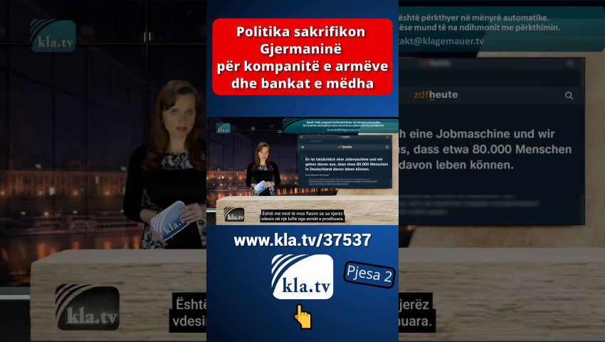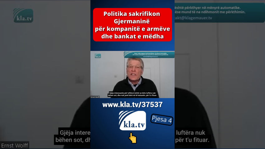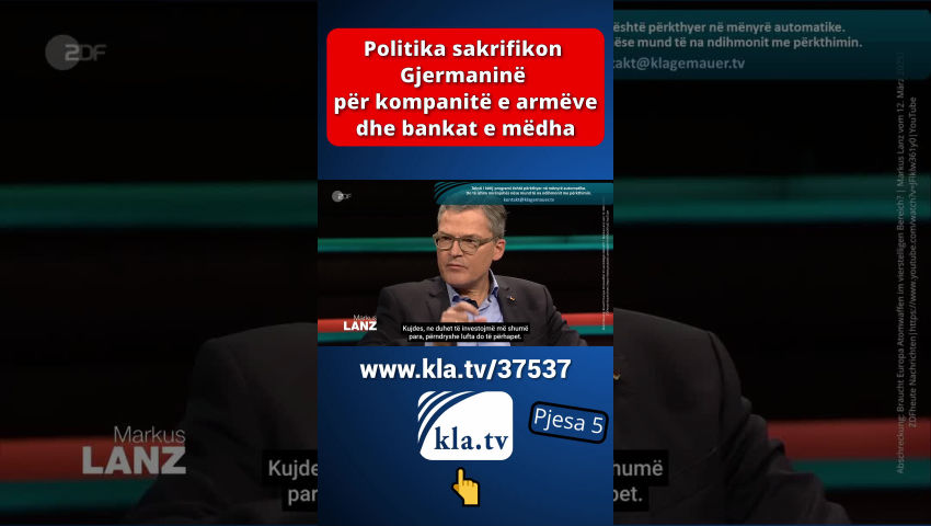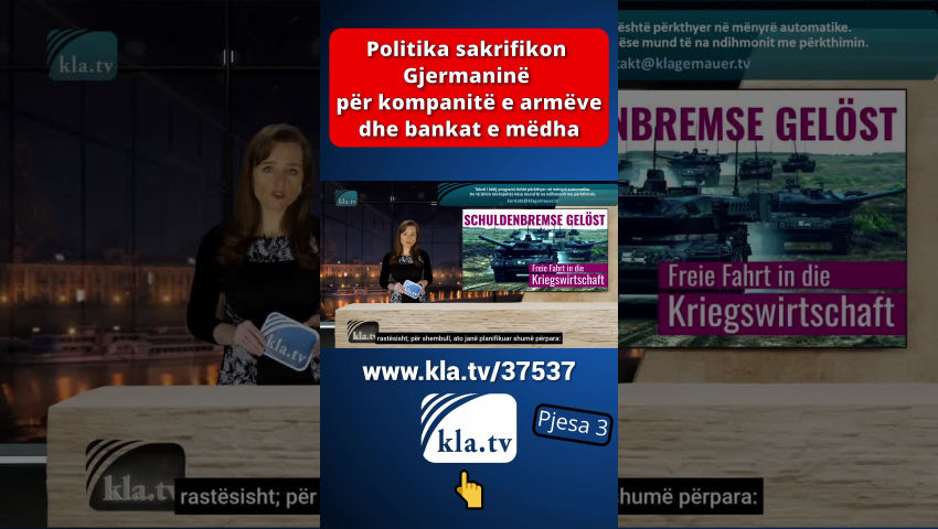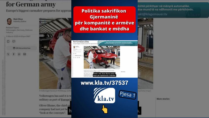 Më 18 mars, Bundestagu gjerman mori një vendim me pasoja të mëdha. I kombinuar me një ndryshim në Ligjin Themelor, ai hapi rrugën për një paketë kredie prej miliardëshe për mbrojtjen, infrastrukturën dhe mbrojtjen e klimës. Kjo do të thotë se i ashtuquajturi “frena borxhi” për ushtrinë dhe klimën është hequr. Kandidati për kancelar i CDU-së, Friedrich Merz, hoqi kështu premtimin e tij zgjedhor vetëm pak ditë pas fitores së CDU-së në zgjedhje. Deri atëherë ai ishte paraqitur si avokat i të ashtuquajturit frena borxhi. Tani është e qartë rruga që kompanitë e armëve të zgjerojnë masivisht prodhimin. Por prodhimi i armëve nuk po rritet vetëm atje, por edhe në kompanitë tradicionale tregtare gjermane. Këto kanë qenë në rënie të lirë që nga shkatërrimi i qëllimshëm i ekonomisë gjermane përmes masave kundër koronës, rregulloreve klimatike, çmimeve të larta të energjisë, etj. Shumë falimentime të kompanive dhe papunësia si pasojë i inkurajojnë kompanitë të kalojnë në armatim. Këtu janë disa shembuj: Prodhuesi holandez i tankeve KNDS po merr përsipër fabrikën tradicionale të vagonëve në Görlitz. Në të ardhmen, këtu do të prodhohen komponentë për tanke luftarake. CEO i Rheinmetall, Armin Papperger, e ka përshkruar fabrikën e VW në Osnabrück si "të përshtatshme" për prodhimin e pajisjeve ushtarake. Shefi i VW, Oliver Blume është i hapur për ripërdorimin e fabrikës. Kërkesa nga Dhoma e Tregtisë dhe Industrisë e Pallatinit të Epërm dhe Rajoni Metropolitane i Nurembergut tregon: Kompanitë nga industria e furnizimit të automobilave dhe përpunimit të metaleve po kërkojnë gjithnjë e më shumë të hyjnë në sektorin e prodhimit të armëve. Në industrinë e automobilave dhe metaleve, mbivendosja ndërmjet përdorimit civil dhe atij ushtarak është e madhe, siç është rasti me kompanitë e teknologjisë së informacionit dhe komunikimit. Kompanitë e armëve po marrin mbështetje të plotë nga media shtetërore. ZDF ka kërkuar nga CEO i Rheinmetall, Armin Papperger, të vlerësojë industrinë e armëve si një "makinë e stacionit të punës" dhe "shpëtimtare të ekonomisë". Citimi i Papperger: "Është me të vërtetë një makinë pune dhe ne supozojmë se rreth 80,000 njerëz mund të bëjnë jetesën prej saj." Është më mirë të mos flasim se sa njerëz vdesin në një luftë nga armët e prodhuara. Ekonomisti Ulrich Kater në ZDF thotë: "Të paktën duhet të kemi parasysh se rreth 100,000 vende pune u humbën në industrinë gjermane vitin e kaluar." [Ekipi redaktues i ZDF:] “Shpenzimet më të larta të mbrojtjes mund të krijojnë gjithsej 200 000 vende të reja pune. Ky është rezultat i një simulimi nga Instituti për Kërkime të Punësimit. Sidomos kur shpenzimet qeveritare financohen me borxhe.” Asnjë konsiderim i shkaqeve të vërteta të rënies ekonomike. Askush nuk po kërkon zgjidhje më të mira sesa prodhimi i armëve vdekjeprurëse që në fund do të shkatërrojnë njerëzit e zakonshëm dhe gjërat e tyre. Rreziku i lartë i luftës që lind nga ndjekja e këtij kursi nuk luan pothuajse asnjë rol në debatin publik. Megjithatë, analisti politik Ernst Wolff e bëri të qartë tashmë në shkurt 2024 se luftërat nuk lindin kurrë rastësisht; për shembull, ato janë planifikuar shumë përpara: [kla.tv/29834] Luftërat nuk ndodhin kurrë rastësisht. [Ernst Wolff:] “Luftërat përgatiten gjithmonë shumë, shumë përpara. Kjo vlen për Luftën e Parë Botërore, kjo vlen për Luftën e Dytë Botërore, kjo vlen për të gjitha luftërat që atëherë. Përgatitja kërkon shumë kohë. Përpjekjet logjistike për këtë janë shumë të mëdha. Pra, një luftë nuk ndodh kurrë ashtu siç i prezantohet publikut, papritur nga një ditë në tjetrën. Diçka është duke lëvizur në sfond për një kohë të gjatë. Dhe në luftën e Ukrainës, për shembull, ishte tashmë e qartë disa javë përpara se lëvizjet e trupave ishin duke u zhvilluar. Gjithçka ishte përgatitur me shumë, shumë kujdes. Dhe sigurisht e gjithë kjo është një biznes i madh. Dhe për këtë arsye ata që merren me këtë biznes duhet të informohen në kohën e duhur. Industria e armëve duhet të informohet me kohë se së shpejti do të kërkohet një numër më i madh armësh se më parë, sepse një numër i madh armësh duhet të shkatërrohen shumë shpejt në një luftë si kjo. Dhe sigurisht, dorëzimi i mëvonshëm duhet të jetë shumë i shpejtë. Pra, në luftë, ky kalim i ekonomisë nga një ekonomi në kohë paqeje në një ekonomi të kohës së luftës është gjithashtu i rëndësishëm. Edhe kjo duhet të përgatitet sërish. Pra, në sfond ndodhin lloj-lloj gjërash që qytetari i zakonshëm as që i vë re. Gjëja interesante për luftërat është se këto luftëra nuk bëhen sot, dhe nuk janë bërë në të kaluarën, për t'u fituar. Luftërat nuk janë gjë tjetër veçse një promovim i industrisë së armëve. Dhe sot industria e armëve është tërësisht në duart e industrisë së IT dhe korporatave të mëdha financiare. Dhe ata janë duke pasur probleme për momentin, sepse nuk po bëjnë fitime të mjaftueshme. Dhe ata tani po i bëjnë këto fitime përmes luftërave.” Si mund ta bëni një popull të shkojë në luftë përsëri dhe përsëri? [Ernst Wolff:] “Qeveritë u thonë njerëzve se ne jemi kundër qeverisë tjetër. Pra, thjesht ndërtohet një armik. Pra, në rastin e Ukrainës u tha papritur: diktatori i madh Putin! [...] Ukraina duket si Davidi kundër Rusisë Goliath. Dhe sigurisht, njeriu normal gjithmonë mban anën e Davidit dhe menjëherë shkon kundër Goliathit. Qeveria amerikane aktualisht po vepron sikur të ishte armiku i madh i qeverisë kineze. Në realitet, kompanitë e mëdha amerikane të IT-së punojnë së bashku me kompanitë e mëdha kineze të IT-së. Në thelb, në sfond, gjithmonë promovohe