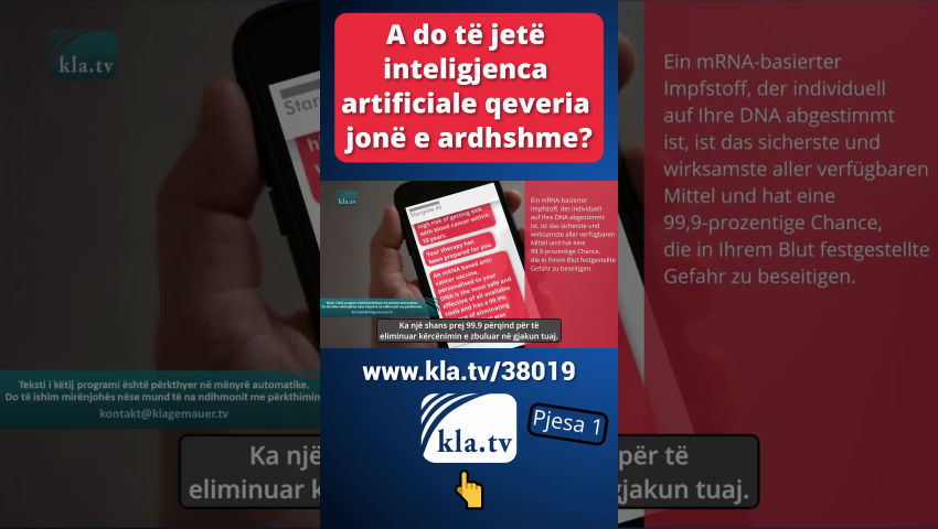 [Patrick Wood:] Në rregull. Do të bëjmë një vaksinë të veçantë me ARNi vetëm për ju! Mendo për mundësitë! Vetëm për ty, në mënyrë që të mos shqetësohesh për kancerin në të ardhmen, sepse tani je i mbrojtur nga vaksina jonë. Këto janë të gjitha mundësi të ardhshme, por imagjinoni! Imagjinoni ndikimin! Le ta shpreh kështu: Kur inteligjenca artificiale vjen tek ju, nuk ka rëndësi se çfarë inteligjence artificiale keni në atë kohë, sepse të gjitha mësojnë me të njëjtat të dhëna, apo jo? Është trajnuar me të njëjtat të dhëna. Pra, në thelb do të nxjerrë çdo diagnozë që ka për ju. Nëse merrni diagnozën se keni kancer tani, mund të mos keni asnjë simptomë, por është në gjakun tuaj - dhe ju e dini se do ta merrni brenda një viti, ose ndoshta kurrë. Por ata thonë se jeni të predispozuar, ndoshta do ta merrni brenda disa vitesh, por duhet të kujdeseni për të tani. Kur IA flet me ty, vjen një mjek ose ndonjë teknik dhe thotë: IA thotë se je në telashe! Ke nevojë për një injeksion! Ku do të marrësh një mendim të dytë atëherë?! Harroje! Jo - shkenca ka folur! Nuk mund të mos biesh dakord. Nuk mund ta sfidosh shkencën! Nuk mund të mos biesh dakord me mjekun tonë të inteligjencës artificiale apo me çfarëdo analisti tjetër…