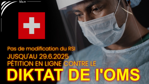 Pétition en ligne "Pas de modification du RSI" - PROLONGÉE jusqu'au 29 juin 2025 ! La communauté d'intérêts "Opting-out RSI" demande : "Le Conseil fédéral doit immédiatement exercer son droit d'opposition selon l'art. 59 du RSI et déclarer son refus des modifications (ce qu'on appelle l'opting-out) !" Découvrez maintenant un extrait du texte original de la campagne "Opting-out RSI" de l'"Alliance pour une Suisse libre" - abrégé en "ABF Suisse" : "Lors de la 77e Assemblée mondiale de la santé, qui s'est tenue du 27 mai au 1er juin 2024, des modifications importantes du Règlement sanitaire international (RSI) ont été adoptées. Contrairement à l'avis du Conseil fédéral et de l'OFSP, ces modifications ne contiennent nullement que des "adaptations de nature technique et de faible portée". En effet, ce qui nous attendrait si nous ne pouvions pas empêcher l'entrée en vigueur : Surveillance et numérisation, contrôle de l'information (censure), Déclaration unilatérale de confinement par le directeur général de l'OMS - par exemple à cause du changement climatique, certificat de test et certificat de vaccination, vaccination obligatoire, quarantaine et isolement, traçage de contacts et autres. Tout cela aurait de graves conséquences sur la liberté des individus et limiterait considérablement nos droits. Le fait que le 19 septembre 2025, le RSI modifié s'appliquera automatiquement à la Suisse si le Conseil fédéral ne s'y oppose pas d'ici le 19 juillet 2025 au plus tard est d'une importance capitale ! Le Parlement doit donc demander au Conseil fédéral d'exercer son droit d'opposition dans le délai imparti et de déclarer son refus des modifications (ce qu'on appelle l'Opting-out). En signant cette pétition d'ici au 29 juin 2025 au plus tard, exigez que le Parlement, en tant que haute autorité de surveillance, incite le Conseil fédéral à fournir les explications nécessaires. Ce n'est qu'ainsi que ces modifications ne s'appliqueront pas automatiquement à la Suisse. Et c'est la seule façon de garantir que le RSI suivra la procédure prescrite au niveau national pour la Suisse. Signez dès aujourd'hui ! Vos données ne seront pas utilisées à d'autres fins sans votre accord. Toute personne - indépendamment de son âge, de sa nationalité et de son lieu de résidence - peut signer la pétition." Le texte de la pétition adressée à l'Assemblée fédérale est le suivant : Règlement sanitaire international : Le Conseil fédéral doit exercer sans délai son droit d'opposition conformément à l'art. 59 du RSI. Pétition à l'Assemblée fédérale Le Conseil fédéral doit immédiatement - au plus tard le 19 juillet 2025 - exercer son droit d'opposition et déclarer à l'OMS son refus des modifications (ce qu'on appelle l'Opting-out). Le Parlement demande au Conseil fédéral d'exercer son droit d'opposition dans le délai imparti et de rejeter les modifications, ainsi que de soumettre le RSI modifié au Parlement. Si vous souhaitez empêcher l'entrée en vigueur du RSI adapté pour la Suisse et l'adoption d'un nouveau traité sur les pandémies, demandez à vos politiciens de s'y opposer. A cet effet, l'Alliance pour une Suisse libre a préparé pour vous neuf modèles de lettres actualisés et un "répertoire d'adresses de politiciens". Vous trouverez le lien vers les modèles dans la "boîte bleue" en dessous de l'émission. L'action "Lettres aux politiques" se déroule jusqu'au 19 juillet 2025 au plus tard. Vous trouverez d'autres informations et actions - comme le sponsoring de l'envoi de flyers - sur le site d'ABF Suisse : https://opting-out-igv.ch/ Diffusez cette émission et contribuez à faire pression sur le Parlement, qui exerce la haute surveillance sur le Conseil fédéral. Le Parlement doit demander au Conseil fédéral d'exercer son droit d'opposition et de déclarer le droit de refus.