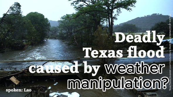 [Moderator:] ວັນທີ 4 ກໍລະກົດນີ້, ລັດເທັກຊັສໄດ້ຮັບຄວາມເສຍຫາຍຈາກໄພທຳມະຊາດທີ່ຮ້າຍແຮງທີ່ສຸດໃນປະຫວັດສາດຂອງລັດ. ບໍລິສັດດັດແປງດິນຟ້າອາກາດຢູ່ໃນຈຸດພິຈາລະນາວ່າເປັນຜູ້ກະທຳຜິດທີ່ເປັນໄປໄດ້ສຳລັບໄພນ້ຳຖ້ວມ. Augustus Doricko, ຊີອີໂອຂອງບໍລິສັດ Rainmaker Technology Corporation, ຢືນຢັນວ່າ Rainmaker ໄດ້ປະຕິບັດພາລະກິດການປູກຝັງເມກເປັນເວລາ 20 ນາທີຜ່ານເຂດ Karnes, ທາງຕາເວັນອອກສຽງໃຕ້ຂອງເຂດທີ່ຖືກນໍ້າຖ້ວມ, ພຽງແຕ່ສອງມື້ກ່ອນຫນ້ານີ້. ປະຈຸບັນ, ມີຜູ້ເສຍຊີວິດ 100 ກວ່າຄົນ ແລະ ຫາຍສາບສູນ 160 ຄົນ. ສື່ມວນຊົນກະແສຫຼັກ, ຕາມເຄີຍ, ກໍາລັງພະຍາຍາມປະຕິເສດການເຊື່ອມຕໍ່ທີ່ເປັນໄປໄດ້ລະຫວ່າງສະພາບອາກາດທີ່ຮ້າຍແຮງແລະການດັດແປງສະພາບອາກາດ. ຢ່າງໃດກໍ່ຕາມ, ການຫ້າມອາວຸດສະພາບອາກາດໃນປີ 1976 ຊີ້ໃຫ້ເຫັນວ່າສິ່ງເຫຼົ່ານີ້ເປັນໄປໄດ້ດົນນານແລ້ວ. [ວິດີໂອ:] ໃນວັນທີ 19 ເດືອນຕຸລາປີ 2017, ສະຖານີໂທລະພາບແອສປາໂຍນ "La 8 Zamora TV" ໄດ້ສໍາພາດ Josefina Fraile ຂອງ "Asociacion Tierra SOS-Tenible" ພາຍໃຕ້ຫົວຂໍ້: "Geoengineering Pact of Secrecy." ທີ່ນີ້ເຈົ້າສາມາດໄດ້ຍິນບາງຄໍາ excerpts verbatim. ພາກເປີດແມ່ນກ່ຽວກັບການຫ້າມອັນທີ່ເອີ້ນວ່າອາວຸດສະພາບອາກາດ. Josefina Fraile ຫມາຍເຖິງສົນທິສັນຍາ ENMOD ("ສົນທິສັນຍາກ່ຽວກັບການຫ້າມການທະຫານຫຼືການນໍາໃຊ້ hostile ອື່ນໆຂອງເຕັກໂນໂລຊີການແກ້ໄຂສິ່ງແວດລ້ອມ"). ນີ້ແມ່ນສົນທິສັນຍາສາກົນທີ່ໄດ້ຮັບຮອງເອົາໂດຍສະຫະປະຊາຊາດ (UN) ເປັນມະຕິ 31/72 ໃນປີ 1976. ເວົ້າສະເພາະແມ່ນການແຊກແຊງທີ່ເຮັດໃຫ້ເກີດດັ່ງຕໍ່ໄປນີ້: - ແຜ່ນດິນໄຫວຫຼືການປ່ຽນແປງຂອງເປືອກໂລກ - ຊູນາມິ - ປະກົດການສະພາບອາກາດເຊັ່ນ: ໄຊໂຄລນ, tornados, ການສ້າງເມກ, ຝົນ / ຝົນ - ການດຸ່ນດ່ຽງຂອງພາກພື້ນ - ຝົນຕົກ. ກະແສນ້ໍາມະຫາສະຫມຸດແລະອື່ນໆ Josefina Fraile: ຂໍ້ຕົກລົງໄດ້ຖືກບັນລຸໄດ້ວ່າອາວຸດສະພາບອາກາດອາດຈະບໍ່ຖືກນໍາໃຊ້ສໍາລັບການຂັດແຍ້ງທາງທະຫານ. ແຕ່ຄວາມຈິງແລ້ວ, ພວກເຂົາຍັງຖືກນໍາໃຊ້. ພວກເຮົາສາມາດເຮັດຫຍັງໄດ້ແລະສິ່ງທີ່ພວກເຮົາສາມາດເຮັດໄດ້ດ້ວຍອາວຸດນີ້? ດ້ວຍອາວຸດນີ້, ພວກເຮົາສາມາດສ້າງຝົນ, ພາຍຸ, ຟັງ, ຟ້າຜ່າ, ແລະພະຍຸຟ້າຮ້ອງຢູ່ທຸກບ່ອນໃນໂລກ. ຫຼືກົງກັນຂ້າມ: ພວກເຮົາສາມາດທໍາລາຍຫນ້າຝົນ, ຢຸດເຊົາການຂອງລູກເຫັບແລະຫິມະ, ແລະ, ແນ່ນອນ, ຍັງເຮັດໃຫ້ເກີດໄພແຫ້ງແລ້ງ. ເກີດຫຍັງຂຶ້ນ? ອາວຸດຂອງການຄວບຄຸມດິນຟ້າອາກາດນີ້: ໃຜກໍຕາມທີ່ຄອບຄອງຂອງມັນມີການຄວບຄຸມຢ່າງແທ້ຈິງກ່ຽວກັບຊັບພະຍາກອນຂອງໂລກ, ໂດຍສະເພາະແມ່ນອາຫານ. ໃນຄໍາສັບຕ່າງໆອື່ນໆ: ຖ້າປະເທດໃດຫນຶ່ງມີເຕັກໂນໂລຢີນີ້, ມັນຄວບຄຸມການສະຫນອງນ້ໍາຂອງໂລກທັງຫມົດ. ທັງເຮັດຕາມທີ່ເຈົ້າບອກແລ້ວເຈົ້າຈະໄດ້ຮັບນໍ້າ, ຫຼືເຈົ້າຄັດຄ້ານ ແລະປະເທດຂອງເຈົ້າຈະຂາດນໍ້າຄື: ບຸກລຸກ, ທຳລາຍ, ທຳລາຍແຫຼ່ງນ້ຳ. ອັນນີ້ເຮັດໃຫ້ເກີດໄພແຫ້ງແລ້ງເປັນເວລາດົນນານ ແລະນໍາໄປສູ່ການບໍ່ສາມາດລ້ຽງດູປະຊາກອນຂອງປະເທດນັ້ນໄດ້. ຜົນໄດ້ຮັບແມ່ນຄວາມອຶດຢາກ. ມັນເປັນຄວາມຈິງ! ມີປະເທ