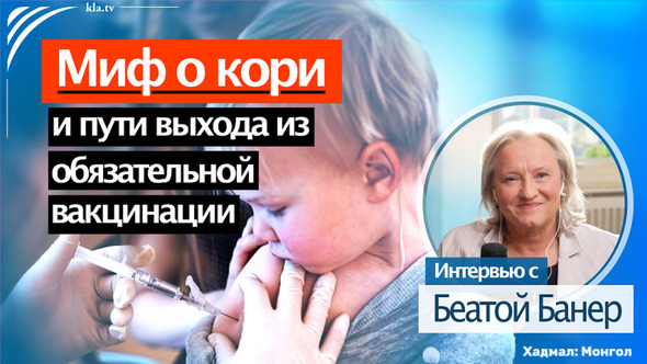 [Тийзэр:] Вакцин хийлгээгүй жирэмсэн эмэгтэй ямар нэгэн байдлаар улаанбурхан өвчнөөр нас барна, өвчтэй өвөө, нялх хүүхэд үхнэ гэсэн судалгаа байхгүй. [...] Эдгээр нь Кох институт, тэр байтугай Холбооны Үндсэн хуулийн шүүх хүртэл одоо найдаж байгаа хуурамч судалгаа, хуурамч судалгаа юм. [...] салхин цэцэг өвчний вакцин хүртэл хуурамч байсан. Улаанбурханы эсрэг вакцин ч мөн адил. Энэ хууль буруу. Энэ нь илт зөрчилдөж байна. Энэ нь зөвхөн эмийн үйлдвэрт үйлчилдэг бөгөөд өөр хэнд ч байхгүй. Шүүхийн авлига, хараат байдал асар их байна гэж бодож байгаа бөгөөд үүнд би маш их цочирдож байна. [...] Та энэ хуулийг ингэж хэрэглэж болохгүй." Улаанбурхан бол бүхэл бүтэн вакцинжуулалтын жишээ юм. Тэгээд би ямар ч вакцинд итгэхээ больсон. Эмийн тухай хууль зөрчигдөж, солигдсон. Мөн энэ нь ковид, улаанбурхан өвчний цорын ганц тохиолдол биш юм. Тэд үхлийн аюултай гэж нэрлэдэг бүх өвчний эсрэг дэлхий даяар жил бүр хэдэн тэрбум удаа вакцин хийлгэхийг хүсч байна. Энэ бол тэдний төлөвлөгөө, бид үүнийг зогсоох ёстой!" [Kla.TV:] Сегодня Kla.TV беседует с юристом, экспертом по пандемическому договору ВОЗ и международным нормам в области здравоохранения. Она специализируется в области медицины и медицинского права, и сегодня мы приглашаем её поговорить о кори. Беате Банер, спасибо, что нашли время ответить на наши вопросы. [Beate Bahner:] С удовольствием. Я рада поговорить с вами о скучной, казалось бы, теме, но которая может стать центральным вопросом пандемий и вакцинации. [Kla.TV:] В Германии уже в течение нескольких лет обязательна вакцинация против кори. Как юрист, как Вы относитесь к этой обязательной вакцинации от кори и какие, на Ваш взгляд, аргументы против? [Беате Банер:] Ну, я родилась в 1966 году, так что я была привита от оспы, её делают в 8-10-летнем возрасте, и так или иначе, вам сделают эту прививку в школе. Обязательная вакцинация от оспы была отменена в 1976 году после более чем 100 лет обязательной вакцинации от оспы, и я выросла без обязательной вакцинации, потому что я родом из Западной, а не из Восточной Германии. В Восточной Германии всё было иначе. Вакцинация была обязательной до падения коммунизма, и за ней очень строго следили. Так что вас просто «вакцинировали», не спрашивая. Но я выросла по-другому - и в 2021 году мне поручили подать конституционную жалобу на эту обязательную прививку от кори, которая внезапно вступила в силу. Решение было принято в феврале 2020 года, так? Мы помним, что в 2020 году что-то происходило, а в силу оно вступило в марте 2020 года. То есть 45 лет у нас не было обязательной вакцинации, а теперь вдруг появилась обязательная вакцинация для определённых групп людей, а именно детей, школьников, работников здравоохранения и образования, беженцев. Прежде всего, это группа людей, в которую ежегодно входит 700 000 детей. У нас в Германии ежегодно рождается около 700 000 детей. Да, и вы удивленно потираете глаза, потому что мы уже слышали о кори. Мы, старшее поколение, болели ею, может быть, и вы тоже. У меня точно была ветрянка, возможно, и корь. Моя сестра болела свинкой и корью. И мы не были привиты от них, потому что тогда, как почти и все дети в мире, мы болели корью естественным путём. С другой стороны, с 1974 года действует рекомендация по вакцинации STIKO - совершенно новая организация, кстати, основанная годом ранее, - и STIKO единогласно говорит, что прививка от кори рекомендуется, 