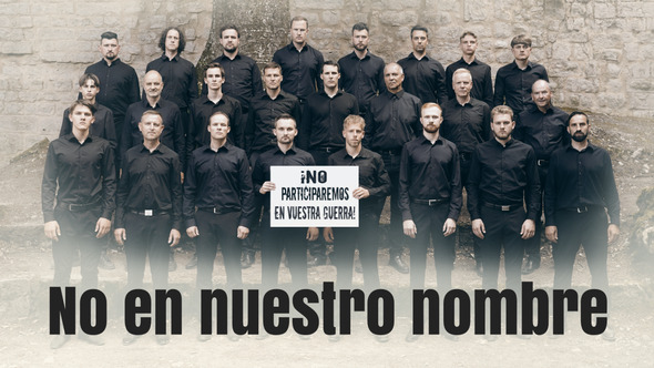 En ti y en mí corre la misma sangre Como hijos y padres, aquí estamos. La paz y la libertad como un bien común Sí, para eso vivimos. No es el origen, ni la raza, ni la religión Lo que separa nuestros corazones La libertad y la paz son la visión Para un mundo digno de ser vivido Y ahora queréis obligarnos A matarnos cruelmente unos a otros Cuando, en realidad, todos somos hermanos Decimos: «¡No en nuestro nombre! No participaremos en vuestra guerra No llevaremos armas Porque nunca llevan a la victoria» Decimos: «¡No en nuestro nombre! No participaremos en vuestra guerra No llevaremos armas Porque nunca llevan a la victoria» ¿Cuánto tiempo más va a durar esto El belicismo, el poder y la codicia? ¿Oís a las víctimas implorar al cielo? ¿Quién detendrá esta locura, si no somos nosotros? Quien fomenta el miedo, el odio y la ira en las personas Es un belicista y un enemigo de la humanidad Es él quien lleva todo a la ruina Y niega toda humanidad Decimos: «¡No en nuestro nombre! No participaremos en vuestra guerra No llevaremos armas Porque nunca llevan a la victoria» Decimos: «¡No en nuestro nombre! No participaremos en vuestra guerra No llevaremos armas Porque nunca llevan a la victoria» ¡Les están quitando a los niños a sus padres! Avergonzáos, sois unos traidores Cuando lleváis a personas inocentes al matadero Y lo consideráis moralmente correcto ¡Naciones, únanse a nosotros! Nadie os dará poder ¡La sangre que mancha vuestras manos Os perseguirá mientras viváis! Decimos: «¡No en nuestro nombre! No participaremos en vuestra guerra No llevaremos armas Porque nunca llevan a la victoria» Decimos: «¡No en nuestro nombre! No nos utilicéis para descargar vuestra ira El odio avivado es como una semilla ¡No somos vuestra descendencia diabólica!» Decimos: «¡No en nuestro nombre! No nos utilicen para satisfacer su codicia Vosotros mismos sufriréis las consecuencias ¡Porque pronto estaréis en el punto de mira!»