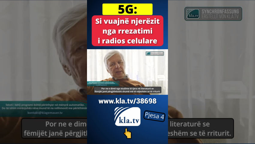 Dokumentari i ri nga transition-news raporton mbi rreziqet shëndetësore të rrezatimit të ri të telefonisë celulare 5G. Kjo teknologji, me nivele deri në njëqind herë më të larta të rrezatimit mikrovalë, ofron shpejtësi transmetimi më të shpejta, por vjen me një çmim të lartë! Studime mbi efektet shëndetësore te njerëzit dhe mjedisi nuk janë kryer. Onkologu Lennart Hardell është i vetmi person që ka kryer studime në jetën reale mbi pasojat shëndetësore të kësaj teknologjie për njerëzit. Persona të tjerë në këtë dokumentar raportojnë gjithashtu se si 5G po ndikon në jetën e atyre që preken.