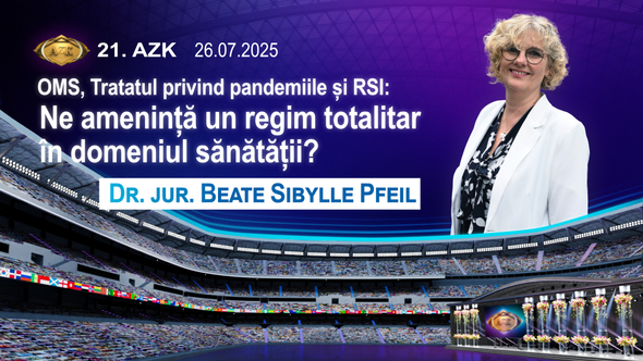 Dr. Beate Pfeil, expertă în drepturile omului și ale minorităților, este considerată una dintre cele mai avizate personalități cunoscătoare a OMS. Neobosită, ea susține acum o prelegere la cea de-a 21-a AZK despre pericolele care ne amenință prin extinderea puterii OMS. Accentul se pune pe recent modificatele Reglementări Sanitare Internaționale (RSI) și pe tratatul planificat privind pandemia.