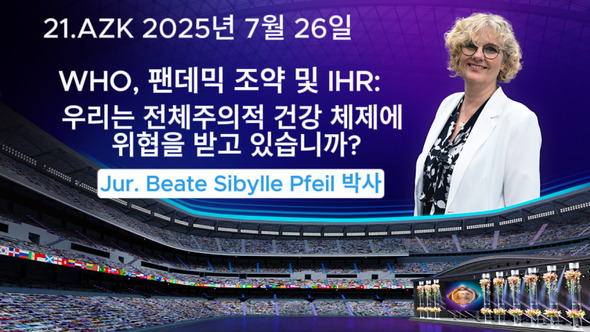 베아테 파일 박사는 오늘 "WHO(세계보건기구), 팬데믹 조약, 그리고 국제 보건 규정: 우리는 전체주의적 보건 체제의 위협을 받고 있는가?"라는 주제로 강연합니다.