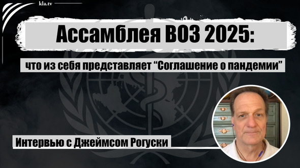 Джеймс Рагуски: «Вероятно, они скажут, что Всемирная ассамблея здравоохранения примет соглашение. Но в соглашении говорится, что его нельзя подписать, пока не будет включено приложение системы доступа к патогенам и распределения выгод (страны должны делиться информацией о новых патогенах)]. Это голословная игра. «Мы приняли его, но не можем подписать». Обновление по следующему интервью: Как и предсказывал Джеймс Рагуски в интервью 10 мая 2025 года, это произошло: 20 мая 2025 года было «принято» соглашение о пандемии. Однако оно еще не вступило в силу. По сообщению Euronews: «Таким образом, некоторые вопросы остаются открытыми или, по крайней мере, неясными. Могут пройти годы, прежде чем соглашение вступит в силу. Для этого его должны ратифицировать 60 из 194 государств-членов ВОЗ». https://de.euronews.com/gesundheit/2025/05/20/weltweit-erstes-pandemie-abkommen-verabschiedet-was-steht-drin ] Интервьюер: Мы очень рады снова пообщаться с Джеймсом Рогуски. Мы побеседуем о договоре ВОЗ по пандемии. Джеймс Рогуски говорит, что у него есть для нас несколько важных новостей. Мы обсудим все это. Джеймс, спасибо за беседу! Рогуски: О, спасибо за приглашение. Да, это очень актуальная тема. Вы знаете, что в последние майские недели проходит 78-я сессия Всемирной ассамблеи здравоохранения ВОЗ. [Интервью было взято 10 мая 2025 года.] И там есть много чего обсудить. С чего бы вы хотели начать? Интервьюер: Итак, это своего рода обновление. Многие из наших зрителей уже обладают некоторой информацией по этой теме, но будут и те, для кого она совершенно нова. Учитывая все то, что заполняет наши почтовые ящики и ленты Twitter, некоторые люди, возможно, этого не заметят. Вы говорите, что в течение двух с половиной лет кричали об этом на всех углах и пытались донести до людей важность данной темы. Итак, давайте предположим, что наши слушатели не осознают, насколько важно знать факты о соглашении ВОЗ. Можете ли вы дать краткое описание для новой аудитории? Рогуски: Короче говоря: Всемирная ассамблея здравоохранения состоится с 19 по 27 мая 2025 года в Женеве. Это не то же самое, что Всемирная организация здравоохранения. На Всемирной ассамблее здравоохранения собираются делегаты всех стран. Они проводят собрание и принимают решения. Ведь именно они должны быть руководящим органом бюрократической структуры ВОЗ. Им предстоит обсудить много вопросов. Но самым важным из них является то, что в основном интересовало меня в течение последних трех лет, а точнее, чуть больше трех лет: так называемое соглашение о пандемии. У него много названий. Многие называют его договором о пандемии, что, по сути, одно и то же. И сегодня утром [10 мая 2025 года] я получил документы, которые подтверждают мои подозрения. Однако это утечка. Это еще не официальные документы. Они еще могут измениться, но я думаю, что это на самом деле хорошие новости. И это то, что мне было ясно уже давно. Они ведут переговоры по этому соглашению о пандемии уже три года, и оно еще не заключено. Переговоры еще не привели к соглашению по так называемой «Системе доступа к патогенам и распределения выгод от их использования» [PABS = Pathogen Access and Benefitting System]. Я знаю, что тем, кто никогда не слышал об этом, это ничего не скажет, но похоже, что им понадобится еще как минимум год, чтобы согласовать этот аспект соглашения. Знаете, внутри я осторожно прыгаю от радости, потому что у нас, возможно, есть еще год, чтоб