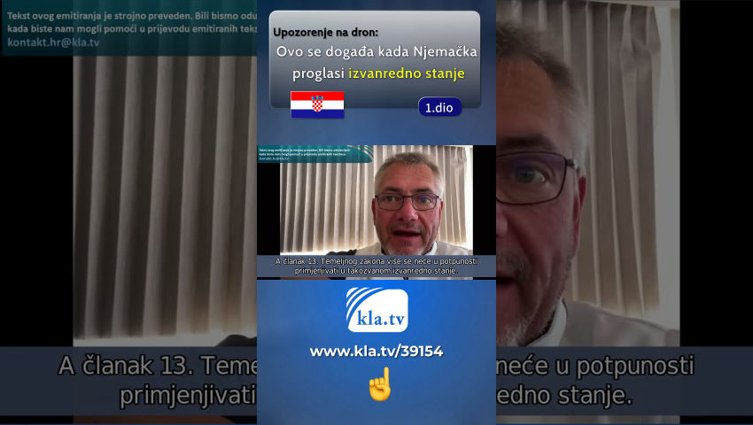 „Upozorenje na dronove – Njemačka mora proglasiti izvanredno stanje“, naslov je objavio welt.de 30. rujna 2025. S obzirom na navodne ruske provokacije na europskom nebu, u politici se pojavljuju početni pozivi za proglašenje izvanrednog stanja. Sigurnosni političar CDU-a i umirovljeni pukovnik Roderich Kiesewetter zahtijeva: Ovo je jedini način na koji Njemačka može bolje zaštititi svoju infrastrukturu i odmah odbiti dronove. Ali što se zapravo krije iza toga – i kakve bi posljedice to imalo za naš svakodnevni život? Frank Hannig otac je dva sina, njemački YouTuber i bivši odvjetnik. Pokazuje što se zapravo događa ako Njemačka proglasi izvanredno stanje i hitno upozorava: [Frank Hannig:] „Imam dva sina, 16 i 21 godinu. Kul su, veliki su i nikad se ne brinem za njih, osim u danima poput današnjeg. Zovem se Frank Hannig. A HANNIG RECHT je moja odvjetnička tvrtka. Sinoć sam u intervjuu za Welt pročitao da je prvi utjecajni političar CDU-a pozvao na proglašenje izvanrednog stanja. Izvanredno stanje je, da tako kažemo, pozornica prije stvarnog rata. Pomislio sam, dobro, ako to učini samo jedna osoba, guglat ću, pa ću vidjeti što se događa, a u sljedećem intervjuu čitat ću samog kancelara Merza: još nismo zapravo u ratu, ali više nismo ni u miru. To znači da će ova izvanredno stanje biti proglašena mnogo ranije nego što sam mislio. Ovo izvanredno stanje znači ponovno uvođenje regrutacije. A sada dolazi ona perfidna stvar koja me toliko brine i zašto vas želim hitno upozoriti, hitno upozoriti da nešto poduzmete ako želite nešto učiniti; inače, ostanite na mjestu, čekajte, idite na frontu. Ovo izvanredno stanje je puno, puno gore od svega što smo doživjeli tijekom pandemije koronavirusa. Ovo izvanredno stanje ozbiljno ograničava temeljna prava. Službeno će reći, da, treba nam izvanredno stanje, moramo proglasiti izvanredno stanje jer je NATO partner, Estonija ili tako nešto, u opasnosti jer ju je letjelo pet dronova, iz kojih god dronova znamo. Sve je ovo čista laž, dakle, ovo su samo priče kako bi vas sve zaglupile. Tako su započeli svi ratovi u svjetskoj povijesti. Uostalom, nije važno. Ako proglasim ovo izvanredno stanje, ljudi će reći da se radi o obrani od dronova. Mislite da ste pametni. Ne, ne, radi se o regrutaciji. Oh, regrutacija, vrtić. Ovo izvanredno stanje dovodi do masovnih ograničenja temeljnih prava. Na primjer, pažnja, držite se i sjetite se koronavirusa, masovnog ograničenja članka 8. Ustava. Sloboda okupljanja može se ograničiti kad god to zahtijevaju sigurnost savezne vlade, sigurnost pojedinih država, sigurnost osiguravanja obrambenih zadataka ili drugi sigurnosni razlozi. Nadalje, znamo da će u stanju obrane ili izvanredno stanje nastati značajne krize. Stoga će biti demonstracija i protudemonstracija, koje će potom jednostavno biti zabranjene. Privatnost dopisivanja, pošte i telekomunikacija bit će ograničena. Proglasit će se izvanredno stanje. I više im neće trebati ni izgovor da čitaju vaše e-mailove. Jednostavno to moraš učiniti. To je izvanredno stanje. Sloboda kretanja, članak 11. Ustava, nitko o tome nikad ne razmišlja, zar ne? Sloboda kretanja, to znači slobodu putovanja. Tada se uredbom, iz bilo kojeg razloga, može odlučiti da vam više nije dopušteno napustiti zemlju. Granice se mogu zatvoriti za određene skupine ljudi, a sloboda se inače može ograničiti u mnogim područjima. Sloboda zanimanja može se ograničiti. To znači da možete biti prisiljeni prihvatiti posao. A članak 13. Temeljnog zakona više se neće u potpunosti primjenjivati u takozvanom izvanredno stanje. To je nepovredivost doma. To znači da, pod određenim okolnostima, kako bi se održala obrambena sposobnost Savezne Republike, službenici mogu pretražiti vaš dom bez sudskog naloga. Fantastično, zar ne? U izvanredno stanje, rokovi za sudske postupke se produžuju. Produžuju se za pitanja koja nisu povezana s ratom. A skraćuju se za važna pitanja. Policija, vojska i civilna zaštita dobivaju proširene izvršne ovlasti. A već ste vidjeli kako policija djeluje tijekom pandemije koronavirusa. Imat će proširene ovlasti nego prije. Vojska se može rasporediti unutar zemlje. Odlično, zar ne? Zakonodavne ovlasti savezne vlade se proširuju. Savezna vlada može preuzeti pojedinačne zadatke koji su prije bili u nadležnosti saveznih država. To znači da savezna vlada, koja je trenutno sastavljena sasvim drugačije od nekih regija sa snažnim sudjelovanjem AfD-a, može jednostavno povući ovlasti tim državama, na primjer nepopularnim državama poput Saske, i reći: "Mi kao savezna vlada sada ćemo to učiniti sami." U izvanrednom stanju, resursi se mogu kontrolirati, a poljoprivredno zemljište osigurati. Može postojati kontrola proizvodnje i mogu postojati konfiskacije. Možda još ne vjerujete, ali uskoro ćete to primijeniti. Zakon o ekonomskoj sigurnosti, na primjer, stupit će na snagu. A to znači da se relevantne tvrtke mogu eksproprirati. Naravno, u zamjenu za odštetu, savezne državne obveznice ili neke druge gluposti. I sloboda medija bit će ograničena. Ni to ne možeš vjerovati. Možeš to pročitati. Sam to proguglaj. I sam sam nešto proguglao, jer više ne bih ni znao. Ili bolje rečeno, pogledao sam u zakonu. Sloboda medija se ograničava. Od medija se može tražiti da budu suzdržani - na njemačkom se to zove dužnost povjerljivosti - o navodno sigurnosno relevantnim temama. Ovo je takozvani izvanredno stanje. To je ono što se događa kad se slijedi Kiesewetterov poziv. A naše iskustvo nam govori da se uvijek netko šalje naprijed. Netko to prvo mora učiniti. Onda se o tome raspravlja. Onda rasprava prestaje funkcionirati. A onda se to tiho i tajno gura. I onda u nekom trenutku dođe vrijeme u Bundestagu i nikoga nije briga. I kažem vam: izvanredno stanje je kraj demokracije. Za Njemačku, izvanredno stanje znači ulazak u diktaturu kontroliranu ratom. To je susp