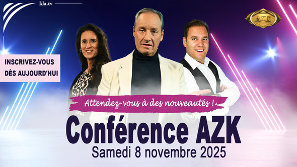 La conférence d'été 2025 de l'AZK sera bientôt suivie d'une nouvelle édition ! Réjouissez-vous de cette nouvelle ! Avec la 22e conférence de l'AZK cet automne, l'AZK monte d'un cran. Accompagnés de conférences et d'interviews motivantes, Ivo Sasek, sa fille Lois et son fils Elias présentent des recherches révolutionnaires. Comme d'habitude, le choix des intervenants et le programme de l'AZK sont une surprise. Voilà ce que nous pouvons révéler. Cette édition de l'AZK présente des solutions pratiques pour les problèmes mondiaux et donne la parole à des lanceurs d'alerte de haut niveau. Soyez de la partie ! Conférence AZK le samedi 8 novembre 2025. Inscription auprès de votre contact AZK ou sur https://anti-zensur.info/azk22/#fr . Traduction simultanée dans un grand nombre de langues Un événement de toute la journée Entièrement gratuit, repas compris ! Super information ! Celui qui abandonne a perdu. - Je suis plein de force et d'énergie. - Impressionnant. – En fait, ce qui m'a le plus impressionné, c'est la synergie entre les gens. L'AZK enthousiasme avec un programme musical qui est bien plus qu'un accompagnement. Il est en phase avec l'actualité : "Nous disons : Pas en notre nom, nous n'irons pas à votre guerre". "Lève-toi ! Tu as un destin". "Viens avec nous pour ce voyage. C'est parti !" Inscrivez-vous dès aujourd'hui sur https://anti-zensur.info/azk22/#fr