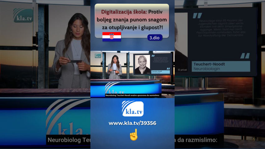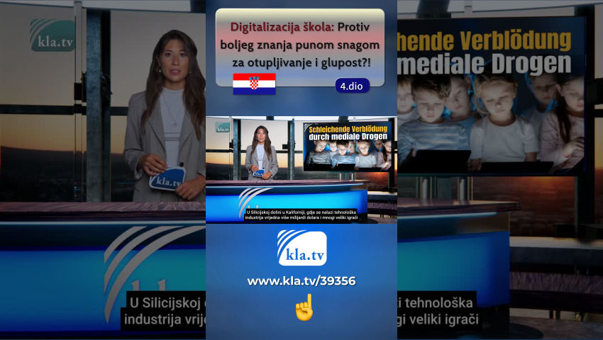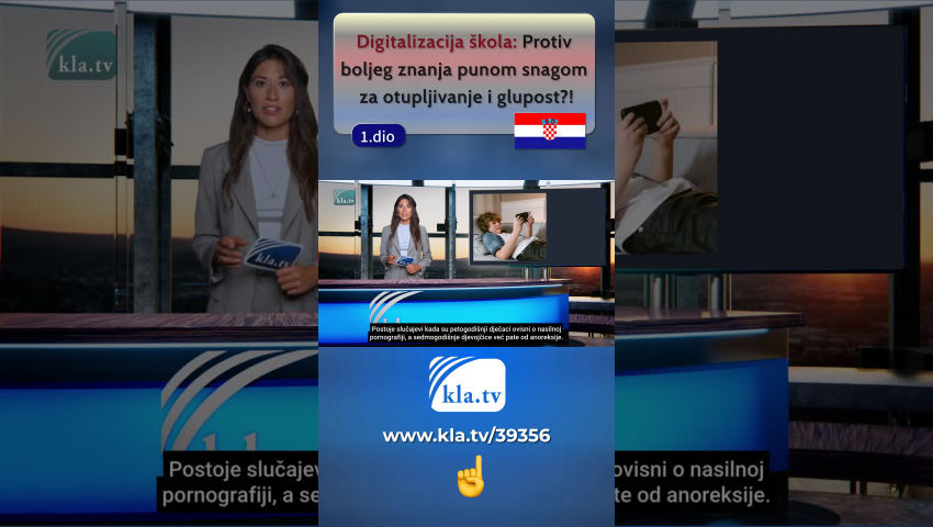 Sada kada su dvije ili tri generacije doslovno zaglupljene i lišene svojih intelektualnih sposobnosti i sloboda, treba li pokrenuti veliki zaokret? Što je, zapravo, potaknulo zemlje da smanje konzumiranje digitalnih medija u školama? Uzimaju li se sada već godinama upozorenja stručnih glasova o opasnosti na koje Kla.TV [# Digitalizacija] upozorava u mnogim programima, konačno za stvarnost? Jesu li ministarstva prosvjete shvatila?