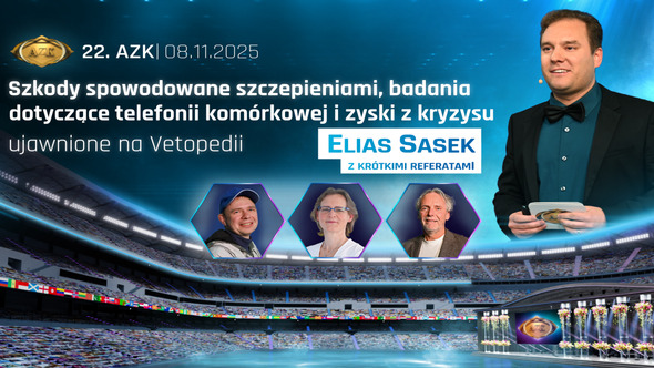 Szkody spowodowane szczepieniami, badania dotyczące telefonii komórkowej i zyski z kryzysu – ujawnione na Vetopedii | 22. AZK, część 3 autorstwa Eliasa Saseka z krótkimi referatami