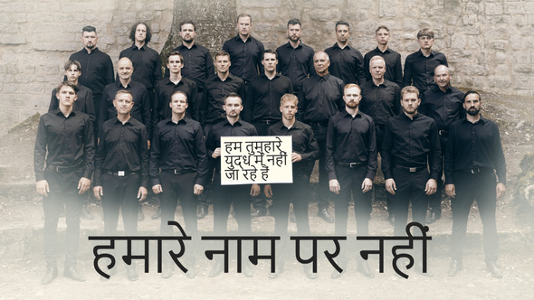 तुम्हारे और मेरे भीतर एक ही खून बहता है पुत्रों और पिताओं के रूप में, हम यहाँ खड़े हैं शांति और स्वतंत्रता, जो कुछ भी अच्छा है हाँ, हम इसी के लिए जीते हैं। न उत्पत्ति, न जाति, न धर्म है जो हमारे दिलों को बांटता है। स्वतंत्रता और शांति ही दृष्टि है एक ऐसी दुनिया में जीने लायक। और अब आप हमें यहाँ जबरदस्ती लाना चाहते हैं एक-दूसरे को क्रूरता से मार डालो, जबकि सच्चाई यह है कि हम सभी भाई हैं। हम कहते हैं: "हमारे नाम पर नहीं! हम आपकी लड़ाई नहीं लड़ेंगे हम हथियार नहीं उठाएंगे, क्योंकि वे कभी भी विजय की ओर नहीं ले जाते।" हम कहते हैं: "हमारे नाम पर नहीं!हम आपकी लड़ाई में शामिल नहीं हो रहे हैंहम हथियार नहीं उठाएंगे,क्योंक हम कहते हैं: "हमारे नाम पर नहीं!" हम आपकी लड़ाई नहीं लड़ेंगे हम हथियार नहीं उठाएंगे, क्योंकि वे कभी भी विजय की ओर नहीं ले जाते।" यह कब तक चलेगा युद्ध भड़काना, सत्ता और लालच? क्या तुम पीड़ितों को स्वर्ग तक पुकारते हुए सुन सकते हो, अगर हम नहीं तो और कौन रोकेगा इस पागलपन को? जो लोगों में डर, नफ़रत और गुस्सा भड़काते हैं एक युद्ध भड़काऊ और मानवद्वेषी है। वे ही हैं जो सब कुछ बर्बादी की ओर ले जाते हैं और सारी मानवता से इनकार करता है। हम कहते हैं: "हमारे नाम पर नहीं! हम आपकी लड़ाई नहीं लड़ेंगे हम हथियार नहीं उठाएंगे, क्योंकि वे कभी भी जीत की ओर नहीं ले जाते।" हम कहते हैं: "हमारे नाम पर नहीं!हम आपकी लड़ाई में शामिल नहीं हो रहे हैंहम हथियार नहीं उठाएंगे,क्योंक हम कहते हैं: "हमारे नाम पर नहीं!" हम आपकी लड़ाई नहीं लड़ेंगे हम हथियार नहीं उठाएंगे, क्योंकि वे कभी भी विजय की ओर नहीं ले जाते।" तुम बच्चों से उनके पिता छीन रहे हो! तुम बच्चों से उनके पिता छीन रहे हो! तुम्हें शर्म आनी चाहिए, तुम देशद्रोही हो, जब आप निर्दोषों को कसाईखाने की ओर ले जाते हैं और इसे नैतिक रूप से सही घोषित करते हैं। हे राष्ट्रों, इसमें शामिल हो जाओ कोई भी आपको शक्ति नहीं देगा, जो खून तुम्हारे हाथों पर चिपका है जब तक तुम ज़िंदा रहोगे, यह तुम्हारा पीछा करेगा! हम कहते हैं: "हमारे नाम पर नहीं! हम आपकी लड़ाई नहीं लड़ेंगे हम हथियार नहीं उठाएंगे, क्योंकि वे कभी भी जीत की ओर नहीं ले जाते।" हम कहते हैं: "हमारे नाम पर नहीं!हम आपकी लड़ाई में शामिल नहीं हो रहे हैंहम हथियार नहीं उठाएंगे,क्योंक हम कहते हैं: "हमारे नाम पर नहीं!" अपने गुस्से के लिए हम पर अत्याचार मत करो, भड़काया गया द्वेष एक बीज की तरह है, हम आपके शैतानी संतान नहीं हैं!" हम कहते हैं: "हमारे नाम पर नहीं!अपने गुस्से के लिए हमारा शोषण मत करो,भड़काई गई नफ़रत एक बीज की तरह ह हम कहते हैं: "हमारे नाम पर नहीं!" हमारा शोषण अपनी लालच के लिए मत करो, तुम खुद ही परिणाम भुगतोगे, क्योंकि जल्द ही तुम हमारी निगाहों में होगे!"