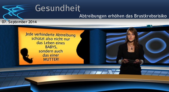 Eine aktuelle Studie des "Tianjin Medical University Cancer Institute & Hospital" in Peking kam zu folgendem Resultat: Mit dem ersten Schwangerschaftsabbruch steigt das Brustkrebsrisiko um 44 Prozent, nach zwei Abbrüchen auf 76 Prozent, nach drei Abtreibungen sind es dann sogar 89 Prozent. Ursache: Durch den Anstieg des Östrogenspiegels, einem weiblichen Hormon, zu Beginn der Schwangerschaft steigt das Krebsrisiko. Am Ende einer Schwangerschaft wird das Brustgewebe durch bestimmte Hormone des Embryos krebsresistent gemacht. Nach einer Abtreibung kann es nicht zu dieser Schutzwirkung kommen. Das bedeutet: Je häufiger eine Frau Abtreibungen vornehmen lässt, desto wahrscheinlicher wird sie an Brustkrebs erkranken. Und je höher die Rate an Abtreibungen in der Gesellschaft ist, desto mehr Brustkrebsfälle belasten uns alle. Jede verhinderte Abtreibung schützt also nicht nur das Leben eines Babys, sondern auch das einer Mutter! Zitat: "Ich könnte nicht an Projekten arbeiten, die nur deshalb für einige nützlich sind, weil sie anderen schaden" René Descartes (1596 - 1650), frz. Philosoph u. Mathematiker