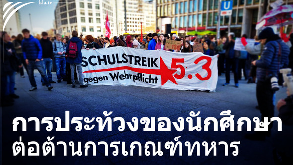 เมื่อวันพฤหัสบดีที่ 5 มีนาคม 2026 นักเรียนหลายหมื่นคนทั่วประเทศเยอรมนีได้ออกมาประท้วงกฎหมายเกณฑ์ทหารฉบับใหม่ โครงการ "การประท้วงของนักเรียนต่อต้านการเกณฑ์ทหาร" ได้ระดมเยาวชนกว่า 55,000 คนในกว่า 90 เมืองเมื่อเดือนธันวาคม 2025 เพื่อประท้วงกฎหมายที่เรียกว่า "พระราชบัญญัติการปรับปรุงการเกณฑ์ทหาร" กฎหมายดังกล่าวได้รับการอนุมัติจากรัฐสภาเมื่อวันที่ 22 ธันวาคม 2025 และมีผลบังคับใช้ในวันที่ 1 มกราคม 2026 ผู้ที่มีอายุมากกว่า 18 ปีในเยอรมนีจะต้องกรอกแบบสอบถามเพื่อเข้ารับการเกณฑ์ทหาร การสอบเกณฑ์ทหารนี้มีกำหนดจะเริ่มบังคับใช้ในปี 2027 การประท้วงของนักเรียนต่อต้านการเกณฑ์ทหารได้ระดมเยาวชนกว่า 55,000 คนในกว่า 90 เมืองเมื่อเดือนธันวาคม 2025 เพื่อประท้วงกฎหมายที่เรียกว่า "พระราชบัญญัติการปรับปรุงการเกณฑ์ทหาร" กฎหมายดังกล่าวได้รับการอนุมัติจากรัฐสภาเยอรมนีเมื่อวันที่ 22 ธันวาคม 2025 และมีผลบังคับใช้ในวันที่ 1 มกราคม 2026 ผู้ที่มีอายุมากกว่า 18 ปีในเยอรมนีจะต้องกรอกแบบสอบถามสำหรับการตรวจสุขภาพ และตั้งแต่ปี 2027 การตรวจสุขภาพเหล่านี้จะกลายเป็นข้อบังคับ ...สำหรับโครงการ "การประท้วงของนักเรียนต่อต้านการเกณฑ์ทหาร" ฟิล เวอร์ริง จากคณะกรรมการประท้วงของนักเรียนเมืองมึนสเตอร์ได้ประกาศว่า "เป็นเวลาหลายปีแล้วที่พวกเราเยาวชนต้องอดทนกับทุกสิ่งทุกอย่าง และตอนนี้เรากำลังจะถูกส่งไปยังค่ายทหาร และในไม่ช้าก็จะถูกบังคับให้เข้าสู่สงคราม เราจะไม่ยอม เราประท้วงเพื่อสันติภาพ เพื่ออนาคตของเรา เราขอเรียกร้องให้ทุกคน—ทั้งเด็กและผู้ใหญ่—เข้าร่วมการประท้วงและสนับสนุนนักเรียนอย่างพวกเราในการกระทำของเรา!" ความกังวลของนักเรียนนั้นไม่ใช่เรื่องไร้เหตุผล ดังที่เห็นได้จากคำแถลงของผู้นำรัฐบาลอย่างฟรีดริช เมอร์ซ เอ็มมานูเอล มาครง และเคียร์ สตาร์เมอร์ เกี่ยวกับการโจมตีอิหร่านของสหรัฐฯ และอิสราเอล ในแถลงการณ์ร่วมลงวันที่ 28 กุมภาพันธ์ 2026 พวกเขากล่าวว่า “เราจะใช้มาตรการที่จำเป็นเพื่อปกป้องผลประโยชน์ของเราและพันธมิตรของเราในภูมิภาคนี้ ซึ่งอาจรวมถึง หากจำเป็น การใช้มาตรการป้องกันทางทหารที่เหมาะสมเพื่อทำลายความสามารถของอิหร่านในการยิงขีปนาวุธและโดรนจากแหล่งกำเนิด” นี่หมายความว่า เยอรมนี ฝรั่งเศส และสหราชอาณาจักรพร้อมที่จะยิงใส่อิหร่านและกลายเป็นผู้มีส่วนร่วมอย่างแข็งขันในสงคราม รัฐมนตรีต่างประเทศเยอรมนี วาเดฟูล ก็แสดงความเห็นเช่นเดียวกัน ในการประเมินของเขา สงครามกับอิหร่านอาจส่งผลกระทบต่อเยอรมนีและยุโรปด้วย แต่ทั้งเยอรมัน อังกฤษ และอเมร