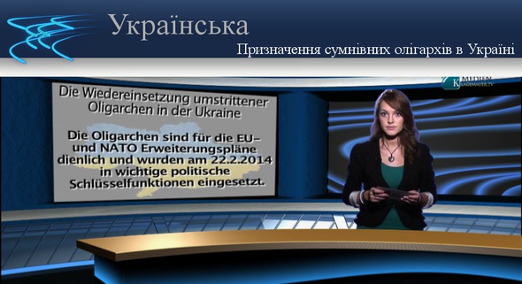 Добрий вечір, шановні глядачі! У 90-і роки олігархи з'явилися в республіках колишнього Радянського Союзу, переважно в Росії і в Україні. Це були підприємці з тісними зв'язками, які розпочали майже з нуля і за короткий термін стали надзвичайно багатими, в основному за рахунок корупції і активної діяльності на чорному ринку. Що і означає слово "олігарх" - "один з небагатьох правителів" країни. В Україні олігархам належать найбільші банки;вони контролюють харчову і сировинну галузі; їм належать найбільші інформаційні агентства і ЗМІ, за допомогою яких вони формують громадську думку; і вони впливають на політичні процеси в країні. Рух протесту на Майдані був спочатку спрямований проти олігархів, відповідальних за соціальну напруженість, породжену ,бідністю. Тому до недавнього часу в Україні (та і у всьому світі) усі були твердо переконані, що олігархи і є проблема України. Але оскільки вони вигідні для здійснення планів розширення ЄС і НАТО, то після зняття Януковича 22.02.2014 їх призначили на посаді з найважливішими ключовими політичними функціями, які вони досі і займають... Незалежні ЗМІ про це б не промовчали.