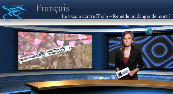Mesdames et messieurs, chers téléspectateurs, nous vous saluons pour notre commentaire média-tique : Le vaccin contre Ebola – remède ou danger de mort ? Les informations sur Ebola dominent sur les médias principaux. Le Canada annonce qu’il peut livrer à l’OMS le premier vaccin contre Ebola. Celui-ci sera bientôt disponible. Mais comme les informations s’accumulent, rapportant que dans les pays africains concernés, des symptômes d’Ebola apparaissent de plus en plus souvent chez les personnes qui justement ont reçu l’injection contre Ebola et que celles-ci en meurent, il est bon de rappeler de nombreux évènements similaires du passé : Par exemple en Août 2013, en Inde, au Bhoutan, au Sri Lanka et au Pakistan, dans le cadre d’un programme de vaccination de l’OMS contre différentes maladies infantiles, il y a eu des cas de mortalité répétés chez les enfants. Suite à cela, en Inde le programme de vaccination a été stoppé, mais il a repris sous la pression de représentants de l’OMS et après d’autres cas mortels, il a à nouveau été arrêté. Ce qui est le plus intéressant, c’est de constater que le vaccin en question n’était autorisé dans aucun pays industrialisé, mais recommandé dans les pays en voie de déve-loppement. En juillet 2013, la CDC, la direction de l’hygiène publique américaine, a avoué qu’entre 1955 et 1963 plus de 98 millions d’Américains ont été vaccinés une ou plusieurs fois contre la polio et qu’une partie des vaccins contenait un virus qui déclenche le cancer. On estime que 10 à 30 mil-lions d’Américains ont reçu ce vaccin d’essai. Au milieu des années 1970, il y a eu un désastre de vaccination. Sur ordre de la CDC et du Prési-dent US Gerald Ford, la pression a été mise sur les Américains pour qu’ils se fassent vacciner contre une épidémie mortelle de la peste porcine, qui était imminente. 50 millions de personnes ont été entraînées dans la panique et ont reçu un vaccin anticipé qui a provoqué chez 20 à 40 % d’entre eux de forts effets secondaires, dont la paralysie et la mort. L’ironie amère, c’est qu’il n’y a eu que quelques cas isolés de cette peste porcine. Entre 1990 et 1996, en Guinée-Bissau, une équipe de recherche danoise a étudié chez plus de 15 000 femmes et leurs nouveau-nés, les conséquences à long terme des vaccins chez les enfants. Ils sont arrivés à un résultat alarmant. Lors du contrôle suivant il y avait eu parmi les enfants qui avaient reçu la vaccination classique, presque deux fois plus de morts que chez les enfants non vaccinés. Dans les années 90, au Nicaragua, au Mexique et aux Philippines, à l’initiative de l’OMS, des mil-lions de femmes de 15 à 45 ans ont reçu le vaccin contre le Tétanos, mais pas les garçons et les hommes. Cela a intrigué une organisation laïque catholique, et suite à cela elle a fait analyser le vaccin. Il était composé d’une hormone qui provoque l’interruption de grossesse chez les femmes enceintes et qui agit comme stérilisant chez les femmes en général. Rappelons-nous la grippe porcine de 2009. La vaccination a été instaurée de façon anticipée par l’OMS à cause du statut de pandémie et sans test clinique suffisant. Il est prouvé que ce vaccin a provoqué chez les enfants la narcolepsie, une maladie affectant le sommeil, et chez les femmes enceintes une augmentation du pourcentage d’enfants mort-nés. Egalement, dans le cadre de la grippe aviaire en 2005, le médicament Tamiflu, employé et conseillé par l’OMS, a provoqué, rien qu’au Japon, 12 morts et 32 cas de méningite. Chers téléspectateurs, actuellement l’OMS voudrait utiliser un nouveau vaccin contre Ebola. En raison des faits cités on doit sérieusement se poser la question de savoir ce qui est visé avec cette vaccination ! Notre commentaire médiatique « Ebola : Attaque visant des collaborateurs de la Croix-Rouge– deux contre-voix venant d’Afrique » du 5 novembre 2014, donne des réponses possibles à cette question. Continuez toujours à vous informer sur Ebola et d’autres sujets. Bonne soirée.