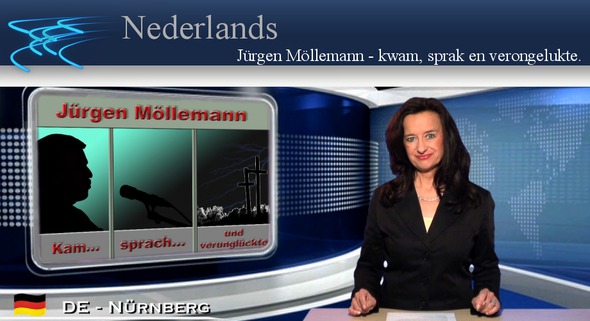 Bedankt studio Roth. Jurgen Möllemann - kwam, sprak en verongelukte. Jurgen Möllemann was FDP-politicus, bondsminister van 1987 tot 1992, en lid van de bondsdag van 1972 tot 2000. Deze man nam nooit een blad voor de mond. Herhaaldelijk heeft hij - na 11 september 2001 - de Amerikaanse politiek van de economische acties tegen de Irakese bevolking, scherp aangevallen. Maar vooral zette hij zich volhardend in voor een vredesoplossing van het Nahost-conflikt. Hij eiste veilige grenzen voor Israël en een eigen staat voor de Palestijnen. Hij was strikt tegen alle geweld op civiele burgers, maar zei letterlijk:”Wie het land van andere mensen bezet, moet weten dat zij zich weren”. Palestina wordt zijn toekomst ontnomen. De oorzaak zou geweest zijn: de breuk in het vredesproces van Oslo, veroorzaakt door Sharon. Ariel Sharon was Minister President van Israël van 2001 tot 2006. Hij verbrak het volkerenrecht en wilde nooit gelijke rechten voor Palestina naast Israël. Möllemann noemde de UN-veiligheidsraad een “grappig figuur”. Möllemann zei letterlijk:”…Als zij binnen enkele weken meerdere besluiten neemt die zeggen dat Sharon zich aan het volkerenrecht moet houden, dan echter, als hij het afwijst, doen zij niets.” In 2002 liet Möllemann - zonder overleg met zijn partijleiding – 8 miljoen folders aan alle huishoudens in Noordrhein-Westfalen verdelen. Hierin vernoemde hij de details van het Nahost-conflict en noemde iedereen met naam. Daarop kreeg hij hevige kritiek en werd van antisemitisme beschuldigd. Zijn partij (FDP) liet hem vallen, o.a. wegens vermeende onwettige financiering van die pamfletten. Op 5 juni 2003 heeft de bondsdag Möllemanns onschendbaarheid opgeheven en minder dan 30 minuten later stortte hij te pletter met zijn parachute. Uitspraken van enkele van zijn vrienden hebben geleid tot de speculatie dat hij werd vermoord. Möllemann mag het zwaar hebben gehad zonder ruggesteun, maar hij is zeker niet de enige die op mysterieuze wijze is verongelukt, nadat hij wantoestanden aan de kaak stelde. We danken u, beste kijkers, voor uw oplettendheid en wensen u nog een aangename avond.