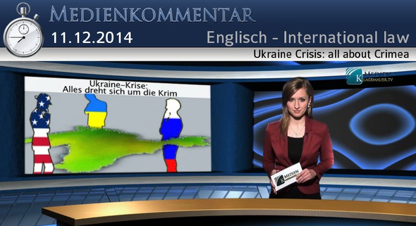 Good evening Ladies and Gentlemen, Welcome to our media commentary. At the annual meeting of the OECD - Organization for Eco-nomic Co-operation and development - on the 4th , of December in Basel, Switzerland, the German Minister of Foreign Affairs Steinmeier and his US colleague John Kerry practiced again using sharp criticism against Russia. Yet again they assessed the incorporation of Crimea into the Russian Fed-eration as being an annexation by Russia and therefore against international law. In his annual speech to the Russian nation shortly before this, President Putin had once again explained the pro-ceedings which had actually happened in Crimea. Putin emphasized that the incorporation of Cri-mea was completely in compliance with international law. Aside from this the Black-sea peninsula has a “great cultural and sacred value” for Russia - as President Putin expressed - comparable to what the temple mount in Jerusalem means to those committed to Judaism or Islam. Which party is right and what exactly does international law express concerning the issue? A look into the United Nations Charter gives clarity. Chapter 1, article 1, paragraph 2, describes how world peace and international security is to be preserved: There should be - I quote: “ friendly relationships devel-oped - based on respect of the basic principles of equal-rights and self-determination of the Na-tions.” End of quote. This internationally recognized right of the peoples to self-determination was applied by the people of Crimea in their peaceful referendum on the 16th of March this year. Over 96% voted for accession to the Russian Federation. Russia merely gave its agreement to this wish to accede, similar to agreeing to a marriage proposal. The detachment of Crimea from the political body Ukraine is therefore not against international law, but at most not complying with the Ukrai-nian constitution. After the violent overthrow in Kiev it is uncertain whether there is even a legal Ukrainian constitution at all. The western powers - especially the USA - continue to vilify the Cri-mean referendum vote as a “violent annexation” by Russia, which would more resemble a rape than a marriage proposal. The sanctions against Russia are up until today, justified by this reputed “Rus-sian aggression”. There is no end in sight for the sanctions, rather continually new and sharper sanctions based on these same accusations. The Ukrainian government’s intent to reconquer Crimea is completely unacceptable in light of the peace negotiations and the United Nations Charter just cited. This would only be possible through a direct military conflict with Russia which must be clearly condemned as aggressive and against international law. The western mass-media is however consensually keeping silent about this danger and instead with iron tenacity they continue to blame Russia alone for the crisis. Meanwhile the government representatives in Kiev are planning to frame a new version of the national security plan and work out a new military strategy. The key priority in these projects is - in opposition to the peaceful referendum vote on March 16th, 2014 - the reestablishment of Ukrainian political sovereignty on Crimean territory”. Ladies and gentlemen, Kla-tv. has already dealt in various broadcasts, this past year, critically and in depth with the con-troversial Crimean issue. By spreading these broadcasts you also can help us make the counter-voice to the western main-stream media heard. Thank you and see you next time at Kla-tv.