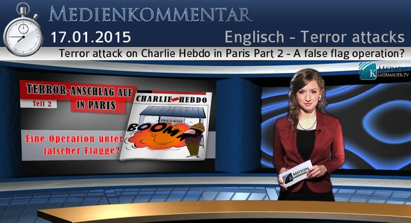Thank you, studio Karlsruhe. I also would like to welcome you heartily to our media commentary today about the terror attack in the editor’s office of the satirical newspaper Charlie Hebdo in Paris on the 7th of January 2015. In this second part of our series we’ll look into whether it was really an Islamic fundamentalist terrorist attack. Could it be that this was yet again, a false flag operation, as many commentators have already hinted? The terror attack on the twin towers in New York, on September 11th 2001, is a classic example of a so-called false flag operation. According to most experts and their countless studies and evidence, this operation was staged by the government and secret services, and then blamed on Islamic fundamentalists - first and foremost on Al Qaida. Klagemauer TV already reported several times that this terror attack, consequently had as a result the so-called “fight against terror” which legitimizes until today some of the bloodiest wars ever and cost more than 1.7 million lives so far. Now back to the question of whether there is evidence that the terror attack on “Charlie Hebdo” may have been a false flag operation? The most conspicuous was the fact that the French investigators supposedly found the identity card of one of the presumed amok-shooters in the escape vehicle. Following this the investigators promptly revealed the identities of the supposed perpetrators. The suspects are two brothers, who supposedly had connections to a group in France that hired Jihad fighters for the war in Iraq. This looks very much like purposely placed evidence as has often been done in the case of other staged terror attacks. Specifically this reminds us of the passport found, completely undamaged, after the 9/11 catastrophe, in the debris of the World Trade Center – a physical impossibility! Still several other incon-sistencies come up concerning the brothers. A witness that supposedly saw the two brothers describes them as “tall and dark”. However according to his ID card the older brother is only 1 meter 69 tall. His former lawyer described him in the French press as “Naive, little crook who likes Rap music and chasing girls”. He was apparently not a definitive fundamentalist. Not much is known about his younger brother except that he has no criminal record. This description of the supposed perpetrators does not portend to the heavily armed, professional, killer-commando which in this case stormed the editor’s offices of the satire paper in Paris carrying out everything with precision and discipline within five minutes. Here at Kla-tv we’ve been receiving commentaries which assume that due to the professional level of the attack, it could likely have been carried out by military trained, secret service specialists. Another inconsistency is revealed concerning the third supposed accomplice, who is accused of having driven the escape vehicle. According to many testimonies however this person was not even in Paris at the time of the crime. We refer also to the video clips from the site of the crime. A short video shows how the amok-shooter fires at a policeman lying on the floor; however one sees no blood or wounds. This might be the reason why the video was removed from YouTube under the pretext – I quote: because it goes against the YouTube guidlines - to shocking, to repulsive contents.” We close with two further clues which reached us here at Kla-tv. They probably give an explanation for why explicitly France should be “punished” with “terrorism” and incited against Islam. First of all: in December 2014 the French parliament expressed their mutual recognition of Palestine as an autonomous State. Already before the vote, Israel’s Prime Minister Netanjahu warned France. I quote: “The acknowledgment of a Palestinian State by France would be a grave mistake.” Secondly: The French President Francois Hollande stood up against the US politics of sanctions against Russia. I quote: “The sanctions have to be stopped if there is to be any progress made” Hollande said, referring to the planned summit meeting in the capitol city of Kazakhstan.