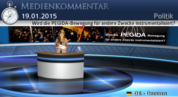 Guten Abend, meine Damen und Herren, herzlich begrüße ich Sie aus dem Studio Dresden zu unserem heutigen Medienkommentar mit der Frage: „Wird die PEGIDA – Bewegung für andere Zwecke instrumentali-siert?“