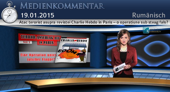 Mulţumim studioului din Karlsruhe. Şi eu vă urez bun venit la comentariul nostru medial referitor la atacul terorist de pe 7.1.2015 asupra revistei de satiră „Charlie Hebdo” din Paris. În această a doua parte ne vom îndrepta atenţia asupra întrebării: a fost acest atac într-adevăr un atac terorist al fundamentaliştilor islamişti, sau este vorba din nou de o operaţiune sub steag fals, după cum pretind deja unii comentatori?Astfel, atacul asupra turnurilor gemene din New York, pe 11 septembrie 2001, este considerat exemplul clasic al unei operaţiuni „false flag”, pe româneşte: operaţiune sub steag fals. Conform majorităţii experţilor şi studiilor efectuate de aceştia, operaţiunile au fost înscenate de propriul guvern şi serviciile secrete, pentru ca ulterior să fie puse în cârca fundamentaliştilor, cu predilecţie al-Qaeda. Klagemauer.tv a raportat adesea despre aceste fapte. Aceste atacuri au avut printre altele ca urmare „lupta împotriva terorismului”, care a legitimat războaie ce s-au soldat cu peste 1,7 milioane de morţi până astăzi. Se pune întrebarea, ce indicii există în cazul atacului terorist asupra revistei „Charlie Hebdo” care să arate în direcţia unei operaţiuni „false flag”? Cel mai frapant este faptul că anchetatorii francezi ar fi găsit în maşina cu care au evadat teroriştii un buletin de identitate, fapt în urma căruia anchetatorii au făcut cunoscută identitatea suspecţilor. Ar fi vorba de doi fraţi care aveau legătură cu un grup care ar recruta în Franţa djihadişti pentru lupta din Irac. Asta seamănă foarte mult cu o plasare de dovezi, după modelul altor atacuri teroriste înscenate. În primul rând aminteşte de paşaportul găsit, după catastrofa din 11/9, complet nevătămat în ruinele pulverizate ale turnurilor din New York – ceva din punct de vedere fizic imposibil. Se mai adaugă şi alte dezacorduri în ce-i priveşte pe cei doi fraţi. Un martor care i-a văzut pe cei doi făptaşi îi descrie drept „înalţi şi negri”. În urma buletinelor găsite însă, fratele mai în vârstă are o înălţime de 1,69 metri. Un avocat care a avut deaface cu el în trecut îl descrie drept un mărunt şmecheraş naiv căruia îi plăcea muzica rap şi care umbla după fuste. El nu a fost un fundamentalist convins. Despre fratele mai mic nu este cunoscut mare lucru, doar că se pare că are un cazier curat. Această descriere a presupuşilor făptaşi nu se potriveşte cu o echipă profesionistă puternic înarmată, ca cea în cazul atacului terorist din Paris, care cu precizie şi disciplină a avut nevoie de doar 5 minute să-şi atingă scopul în redacţia revistei de satiră. Pe postul nostru au sosit comentarii în care, pe baza profesionalităţii atentatului, se presupune că atentatorii ar putea fi specialişti antrenaţi militar ai unui serviciu secret. O altă anomalie s-a dovedit a fi un al treilea personaj, care a fost acuzat să fi condus maşina. Dar conform mai multor mărturii, acesta în timpul atentatului nici măcar nu se afla la Paris. În continuare atragem atenţia asupra unor imagini filmate de la locul crimei. Un video scurt arată cum unul din cei doi terorişti trage focuri de armă asupra unui poliţist care zace la pământ. Dar nu se vede nici sânge, nici vreo rănire. Acesta ar putea fi şi motivul pentru care videoul a fost scos de pe You Tube sub pretextul că „încalcă normele politicii You Tube referitoare la conţinuturi şocante şi dezgustătoare”. Şi în final, încă două referinţe care au sosit pe kla.tv şi care dau o posibilă explicaţie, de ce tocmai Franţa urmează să fie pedepsită cu „terorism” şi incitată împotriva islamului. În primul rând, la începutul lui decembrie 2014, parlamentul francez s-a exprimat pentru recunoaşterea Palestinei ca stat independent. Încă înainte de vot, premierul israelian Netaniahu a avertizat, citez: „Recunoaşterea unui stat palestinian de către Franţa ar fi o greşeală gravă.”În al doilea rând, preşedintele francez de stat, François Hollande, s-a opus politicii SUA de sancţiuni împotriva Rusiei, citez: „Sancţiunile trebuie anulate dacă vrem să existe progres”, a afirmat Hollande şi s-a referit la întâlnirea de vârf planificată pentru 15 ianuarie în capitala kazahă. Doamnelor şi domnilor, iată câteva dintre cele mai importante voci contra în ce priveşte atacul terorist împotriva revistei de satiră „Charlie Hebdo”. Aceste voci arată alte corelaţii şi o altă imagine faţă de cea care ne este servită de mass-media occidentală. Asemănări cu 11/9 sunt de netrecut cu vederea. Atunci, după cum am mai arătat, conform dovezilor nenumăraţilor experţi, a fost vorba de o operaţiune sub steag fals. Teroare de stat organizată a fost folosită pentru a atinge anumite scopuri. Rămâneţi cu noi pe kla.tv pentru a afla mai multe contexte şi fundaluri despre ceea ce se întâmplă actualmente în lume. La revedere.