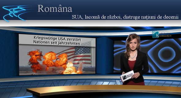 SUA, lacomă de război, distruge naţiuni de decenii În 1967, în biserica Riverside-Church, Dr. Martin Luther King a spus: “Cel mai mare furnizor de violenţă pe pământ este propriul meu stat.” Lista ţărilor atacate fără motiv şi urmările acestor atacuri este lungă: Corea şi Vietnam, deosebit de devastatoare: nenumăraţi copii vietnamezi în spitale, şi care astăzi încă suferă de urmările atacurilor cu gaze nocive; Nicaragua a sărăcit; Iracul şi Libia sunt pustiite. În Grenada, o mică insulă turistică, mulţi au fost ucişi din pofta de război, fără motiv. Ruanda şi Panama: capitala în Panama a fost distrusă şi s-au găsit şi gropi comune. Afganistan şi Sudan: în Sudan, în apropierea capitalei, tot din poftă de război a fost distrusă o fabrică de medicamente, care era o sursă importantă şi ieftină de medicamente pentru Africa neagră, săracă din punct de vedere economic, ş.a.m.d. Vor urma poate şi alte distrugeri, în cazul în care comunitatea mondială nu le retrage adepţilor de război din SUA sprijinul lor. Ajutaţi la răspândirea Klagemauer.tv în mediul dumneavoastră.