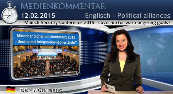 Hello and welcome valued viewers. I greet you today from our studio in Nurnburg. This weekend from the 6th to the 8th of February, the 51st annual Munich Security Conference is taking place in Munich, Germany. There are a number of high-level representatives at this international meeting from security politics, military, weapons-industry, media as well as NATO members and European Union members but also representatives from many other countries such as China, Japan and India. In total around 20 heads of governments are expected as well as about 60 foreign- or defense-ministers and also more than 30 executive directors of large international corporations are expected in Munich. Munich’s city center directly around the hotel where the meeting is taking place is completely blockaded through security forces. Close to 4000 police officers and 300 soldiers are in operation to keep the area secure. Already in 2014 German President Gauck took advantage of the world stage at the Security conference to advertise for “stronger German war involvement: Germa-ny “must - earlier and more substantially engage itself at the military level”. The supposed “German military ‘restraint’ is a relic of the past”. Announced topics of this year’s meeting are, amongst others, the degrading international order, the dramatic situation of refugees in many parts of the world and the increasingly critical situation in the near- and middle-east. The central topic will cer-tainly be the crisis in Ukraine and in the face of a more and more critical situation there, this will be a controversial meeting. Based on the statements of conference director Mr. Wolfgang Ischinger, the direction the conference will take is quite clear: he explicitly welcomed the American plans to deliver weapons to Ukraine as “absolutely appropriate and important”. Ischinger also belongs to the camp of those who exclusively blame Russia and the “Seperatists”, not however Poroschenko and his troops for the murdering of the civilian population in Ukraine. With this Ischinger conveniently offers conference participants the desired propaganda forum - on the one hand to continue propagating Russia as the “enemy” and on the other hand to keep moving along the already started, highly dangerous confrontation course. The NATO resolution made in Wales half a year ago to form a “spearhead” unit, is part of this confrontation course. This “spearhead” is a 5000 member unit which could be deployed at short notice to Poland or the Baltic states at the first signs of ten-sion. Also a part of the confrontation course - establishing and up-grading NATO military bases in eastern European countries, providing Kiev with weapons, NATO troop maneuvers in Ukraine and build up of the NATO Missile defense system. On top of this the confrontations course is being supported by the media. The major German newspaper: Süddeutsche stirs up impatience in the February 5th issue writing that the intervention troops should be more quickly available. To illustrate this they emphasize the laziness of democratic politics which is much to slow in putting into action already concluded issues. On the other hand they present Putin’s politics as dictatorial and accuse Putin of leading a propaganda war. One thing is clear: the propaganda machine which has been set in motion is being followed up on by the network of media, politicians and weapons industry. The term “security” is being misused in the case of this conference, as those meeting are obviously not interested in people’s security but, at the most in a securing of further warmongering goals. Again the strategy of western power elite is clearly revealed. Through media, politicians and NATO on the basis of mere assumptions the agitation against Russia continues. Russia should be stamped in the minds of European citizens as the “bad enemy”. Like this further steps towards confrontation with and provocation of Russia can be justified and set up. Valued viewers, have you too seen through this repeated sequence of events, taken a stand to bring light into it and make it public? In light of this so-called Security conference, a peace movement has been formed, supported by a large alliance of peace activist groups. Every single citizen who breaks the silence and in whatever form it may be, joins up with a peace movement, helps to give this opposition movement to war more weight. Stay tuned in and join us again tomorrow on Kla.tv! Good bye until next time.