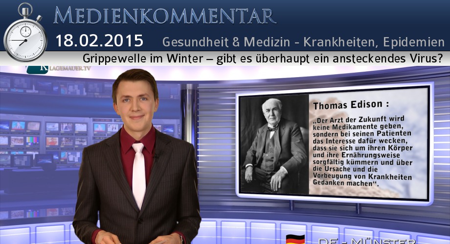 Sehr geehrte Damen und Herren, Spiegel online berichtete am 13.Februar, dass eine Grippewelle Deutschland erreicht habe und dass sie in diesem Jahr besonders heftig zu werden drohe. Wir begrüssen Sie zu unserem Medienkommentar: Grippewelle im Winter - Gibt es überhaupt ein ansteckendes Virus?Zu dieser Frage lassen wir den Arzt Dr. Claus Köhnlein und den Journalisten Torsten Engelbrecht zu Wort kommen. Sie haben in ihrem Buch „Viruswahn“ zu verschiedenen Arten von Grippeerkrankungen recherchiert. Sie sind dabei zu Schlüssen gekommen, die dem herkömmlichen Krankheitsmodell, das die medizinische Fachwelt vertritt, völlig widersprechen. Doch hören wir mal auf das, was Dr. Köhnlein und Torsten Engelbrecht zu sagen haben: Zunächst zur Vogelgrippe. Diese sei gemäss der WHO und den Medien im Herbst 2005 aufgetreten. Dieses angebliche Grippevirus wurde damals von der WHO als „hochgradig ansteckend“ bezeichnet. In ihrer Recherche zum Thema „Viruserkrankungen“ wandten sich Köhnlein und Engelbrecht unter anderem an das Bundesforschungsinstitut für Tiergesundheit. Denn dieses sei laut dem deutschen Verbraucherschutzministerium im Besitz „reiner Vogelgrippe-Viruskulturen“. Aber genau das konnte nicht bestätigt werden. In keiner wissenschaftlichen Arbeit wurde nämlich ein echter Virusnachweis erbracht. Ich zitiere: „In den Medien wer-den zwar Bilder von angeblichen Vogelgrippeviren gezeigt. Doch handelt es sich dabei um Computeranimationen oder um, wie für jeden Molekularbiologen leicht erkennbar, künstlich im Labor hergestellte ganz normale Zellbestandteile.“Etwas später, nämlich im Jahr 2009, tauchte die Schweinegrippe auf. Damals wurden in Infoflyern der deutschen Bundesregierung Fotos gezeigt, auf denen eine elektronenmikroskopische Aufnahme des neuen Schweinegrippevirus zu sehen sein soll. Doch gemäss Dr. Köhnlein gibt es zum Foto keine Quellenangabe. Selbst vom Robert-Koch-Institut sei nicht zu erfahren, welcher wissenschaftlichen Veröffentlichung dieses Foto entnommen sein soll. Insofern sei die Behauptung, auf den Aufnahmen sei ein „Schweinegrippevirus“ abgebildet, wissenschaftlich äusserst fragwürdig, um nicht zu sagen völlig haltlos. Aufgrund dieser eklatanten Feststellungen fragen die Autoren: Was wird denn nun bei den angeblich am Grippevirus erkrankten Menschen im Blut überhaupt nachgewiesen? Denn es werden nie ganze Viren nachgewiesen, sondern lediglich Teilchen, von denen behauptet wird, sie seien Teil eines von aussen eindringenden und krankmachenden Grippevirus. Dr. Köhnlein erklärt es folgendermassen: In allen menschlichen und tierischen Zellen kommen Stoffe vor, die für die Aufrechterhaltung des Stoffwechsels sehr wichtig sind. Bei der Zerstörung von Zellen, zum Beispiel durch Stressfaktoren, werden diese Stoffe vermehrt gebildet und aus den Zellen freigesetzt. Ihr Nachweis im Blut von kranken Patienten wird von der Schulmedizin als Teil eines Virus bezeichnet, ohne dass jemals der komplette Virus dargestellt werden konnte. Dies gilt also auch für die ganz gewöhnliche Grippe.Sehr geehrte Damen und Herren, nun ist im Winter ja zweifelsohne zu beobachten, dass vermehrt Erkältungskrankheiten auftreten. Bleibt die Frage an die Autoren: Wenn es nicht Viren sind, die die Erkältungswellen auslösen, was ist denn dann deren Ursache? Dr. Köhnlein zieht nach gründlicher Analyse von Geschichtsbüchern und Statistiken folgenden Schluss: So genannte Epidemien seien vor allem auf eine Schwächung des Immunsystems zurückzuführen. Diese Schwächung geschieht zum Beispiel durch Stress. Stress durch Kriege, gesellschaftliche Unruhen, Umbrüche und dergleichen. Schwächungen geschehen aber auch durch Mangel- und Fehlernährung, anhaltende Kälte und zu wenig Sonnenlicht. Thomas Edison, einer der grössten Erfinder der Weltgeschichte, hat schon zu seiner Zeit eine Voraussage getroffen, die in diesem Zusammenhang sehr trefflich erscheint: Ich zitiere:„Der Arzt der Zukunft wird keine Medikamente geben, sondern bei seinen Patienten das Interesse dafür wecken, dass sie sich um ihren Körper und ihre Ernährungsweise sorgfältig kümmern und über die Ursache und die Vorbeugung von Krankheiten Gedanken machen“. Darüber lohnt es sich sicher nachzudenken. Guten Abend.