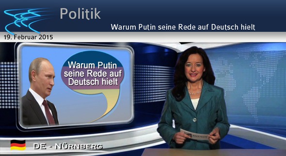 Guten Abend liebe Zuschauer hier aus dem Studio Nürnberg. Präsident Putin hielt am 25. September 2001 eine Rede vor dem Deutschen Bundestag. Als er später gefragt wurde, warum er die Rede fast durchgehend auf Deutsch gehalten habe, antwortete er folgendermaßen: „Ich wollte mit meiner Rede auf Deutsch folgendes erreichen: Unsere Partner in Europa und in Deutschland sollten sehen, dass wir uns in einer Sprache verständigen können. Im engen und übertragenen Sinne des Wortes. [...] Ich wollte das breite Publikum – die Zuschauer in Deutschland – davon überzeugen, dass Russland ein befreundetes, freundschaftliches Land ist. [...] Weil wir – Russland – uns als Europäer, als europäisches Volk sehen und fühlen, wollen wir nach gemeinsamen europäischen Regeln und Werten leben. Wir wollen unsere Zukunft zusammen mit Europa und der Weltgemeinschaft gestalten.“ Soweit die Aussage von Vladimir Putin. Dass dieses Bestreben auf Gegenseitigkeit beruht, bekräftigt nachfolgendes Zitat von Jürgen Elsässer, dem Chefredakteur des Nachrichtenmagazins „COMPACT“: „Wenn es eine Lehre aus der Geschichte gibt, dann diejenige: Deutsche und Russen dürfen sich nie mehr gegeneinander hetzen lassen! Wenn Deutsche und Russen zusammengehalten haben – egal ob unter Friedrich dem Großen oder unter Bismarck oder beim Rapallo-Vertrag oder unter Willy Brandt – dann ging es nicht nur unseren beiden Völkern gut, sondern dem ganzen Kontinent. Deutsche und Russen sind keine Feinde!“ In diesem Sinne verabschieden wir uns von Ihnen, verehrte Zuschauer, und wünschen wir Ihnen noch einen friedlichen Abend!