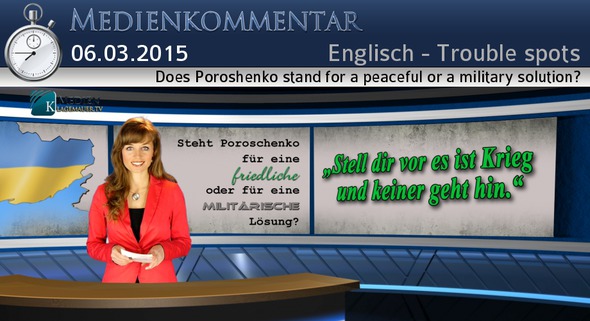 Hello and welcome to Kla.tv valued viewers. In our broadcast from the third of March, 2015 con-cerning the Minsk peace treaty we asked the following question: “Are not peace treaties often made in order to be broken again and this often through a third unknown party?” Under the guise of a broken peace-treaty then further economic or military measures are justified. This same pattern seems to be confirming itself again in the Ukraine conflict. Both sides accuse each other of disre-garding the Minsk peace-treaty from February 12th, 2015. The Ukrainian army says: this makes the withdrawal of troops impossible. The bombing incident in Charkov from the 21st of February 2015 also brings up questions. In Ukraine’s second biggest city Charkov, 300 pro-Ukrainian demonstra-tors fell victim of a remote-controlled bomb explosion which injured 11 and killed 4 people. Presi-dent Poroschenko criticized the attack as: “attempt to spread the influence of terrorism”. The perpe-trators are still unknown. Yet could it be that the bombing comes at an opportune time for the pres-ident, who can now further show “military strength”? It is no secret that Poroschenko is under ex-treme pressure, as Swiss TV, SRF reported on February 20th, 2015: Political representatives of the right sector and the so-called voluntary battalions laid down the conditions, that Poroschenko must not shrink back and must show military strength otherwise, I quote: “if necessary storming Kiev comes next”. We dealt in more detail with this in our media commentary from March 3, 2015. You’ll find it under this date our English broadcasts This eye-witness report we just received here at Kla.tv. seems to also confirm that Poroschenko is hardly interested in keeping the Minsk peace agreement but rather interested in a military solution. The report came from a Ukrainian woman now living in Germany, who asked us to make the situation known. She is confronted with it daily due to the fact that most of her relatives and parents live there. The day to day situation of these people is over-shadowed by fear. No one knows what they might have to face next. But hear for yourself what this woman reports: