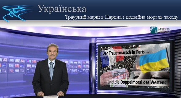 Минулої неділі 12 січня 2015 року за повідомленнями головних ЗМІ більш ніж 3,7 мільйонів людей взяли участь у пам'ятних маршах по всій Франції. Ці марші проходили в пам'ять 17-ти жертв терористичних актів на сатиричний тижневик «Шарлі Ебдо» та єврейський супермаркет. Тільки в Парижі зібралося майже 1,6 мільйонів чоловік - стільки, скільки не збиралося за часів завершення Другої Світової війни. У першому ряду марширували численні провідні політики, глави держав і урядів з усієї Європи і навіть з Ізраїлю та Палестини. Швейцарський федеральний радник Симонетта Соммаруга підкреслює, що всі вони, я цитую: «особисто стали на захист спільних цінностей, які є важливими для нас». Які ж загальні цінності повинні бути підняті, через які світове співтовариство тісніше згуртову-ється, як висловився німецький телеканал Tagesschau (тагешау)? Чи насправді хвилюють ви-сокопоставлених політиків всі ті люди, які втратили своє життя через теракти? Або час від ча-су роблять величезну різницю в «особистому стати на захист», тому що потай переслідують зовсім інші цілі? Безперервно до нас приходять повідомлення, що в різних країнах щодня гинуть люди від те-рактів. Але про більшість з цих випадків вкрай жорстокої нелюдяності західні політики та ЗМІ повністю замовчують. Візьмемо наприклад Україну. Від імені сходу України, що все ще перебуває в боях, ми даємо слово вчительці з Донецьку. Кла.ТВ запитало її 30 грудня 2014 року, як виглядає актуальна ситуація в Донецьку. Вчителька української мови відповіла, я цитую: «Час від часу ведеться обстріл з великокаліберних знарядь українською армією по житлових кварталах міста. Гинуть мирні жителі, маленькі діти, літні люди. [...] На це страшно дивитися, особливо якщо гинуть саме маленькі діти. Особливо якщо бачиш і знаєш, що це відбувається постійно, з певною періодичністю. Нещодавно, в житловий будинок в Горлівці потрапила ракета, і загинула вся сім'я, разом з дітьми. Це жахливо! І ніхто не знає, коли ж закінчиться ця війна ». Ця розповідь далеко не одинична. Навіть інтернаціональна організація з прав людини Human Rights Watch (HRW) «Хьюман Райтс Уотч» повідомляє про довільне застосування українською армією артилерії і ракет в східно-українських містах. Артилерія і ракети всередині великих міст, що стріляють по мирних жителях? Що, перепро-шую ?! І це не терористичні акти? Для західних політиків і ЗМІ в усякому разі ні, що свідчить про їх подвійну мораль. Згадаймо, що за свідченнями ООН вже тільки до вересня 2014 року загинуло 3200 невинних мирних жителів в східній Україні. Це число на сьогоднішній день на-певно збільшилося більш ніж удвічі, а то і втричі.... Але давайте ще раз послухаємо вчительку, що вона хоче сказати світовій громадськості, гла-вам західних держав і простим громадянам. «Дивно, як світова спільнота реагує на ці події. Коли в 2012 році, напередодні футбольного чемпіонату Євро 2012, в Києві відстрілювали со-бак, щоб очистити місто від бродячих собак піднялося багато організацій на захист цих тва-рин, і навіть міжнародні організації ... У нас насправді гинуть люди, і світова спільнота практи-чно ніяк не реагує. Одні розмови, зустрічі на різних рівнях і т.п. Практично від цього нічого не змінюється на краще, тобто у напрямку вирішення цього воєнного конфлікту. Я прошу всіх бути не байдужими до того, що відбувається на Донбасі. Ви дійсно не до кі
