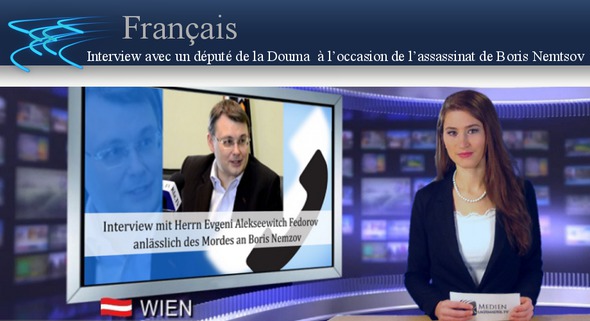 Nous, à Kla-tv nous avons réalisé une interview téléphonique avec Evgeni Alekseewitch Fedorov de Moscou, et nous lui avons demandé ce qu’il en pensait. M Fedorov est député de la Douma, président du conseil économique de la fédération russe ainsi que fondateur du mouvement de libération nationale. Dans cette interview on parle aussi de la manifestation du 1er mars, qui avait été initialement prévue comme manifestation de l’opposition en Russie. Du fait de l’assassinat de Boris Nemtsov cette manifestation a été en même temps une marche funèbre. Voici directement l’enregistrement de l’interview.