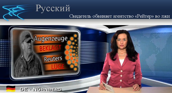 И снова очевидец обвиняет СМИ в большой лжи. Добрый вечер, дорогие зрители! По данным выпуска новостей канала SRF 1 в 8:00 сейчас, спустя несколько месяцев после крушения малазийского пассажирского самолёта, следовавшего рейсом МН17 и предположительно сбитого над Восточной Украиной, в сети интернет ищут свидетелей этой катастрофы. Тогда в этой авиакатастрофе погибло 298 человек. Международные следователи, настоящие имена которых пока что не известны, в настоящее время ищут свидетелей обстрела самолёта из ракетной установки «Бук». И именно сейчас канал Kla.tv мог бы предоставить такого свидетеля. Он говорит о том, что информационное агентство новостей «Рейтер» исказило его свидетельские показания на 180° с точностью до наоборот. Итак, слушайте и делайте выводы: (Рейтер – одно из крупнейших международных новостных агентств полностью сфальсифицировало показания относительно катастрофы рейса МН17). Украинский свидетель крушения самолёта малазийской авиакомпании из Луганской области сообщил российскому телевидению, что агентство Рейтер исказило его интервью о данной авиакатастрофе до неузнаваемости. Его заявление, что он видел ракету, выпущенную с территории подконтрольной украинской армии, было представлено Рейтер так, как будто ракета была выпущена с так называемой «мятежной территории». (На вопросы российского телевидения агентство Рейтер не ответило до сих пор). В рамках доклада о причинах авиакатастрофы MH17 на востоке Украины, Британское информационное агентство Рейтер провело интервью с 58-летним Петром Федотовым из села Червоный Жовтень в Луганской области. Согласно диффамации Рейтер, он наблюдал, как ракета класса земля-воздух была выпущена по малазийскому пассажирскому самолёту предположительно с позиций пророссийских сил обороны. В своём докладе агентство пишет: «В интервью Рейтер Федотов, описывая полёт ракеты, сказал перед камерой о том, что она была выпущена с территории, подконтрольной украинской армии. Позже, без камеры, он признаёт, что ракета была выпущена с соседней мятежной территории. Когда его спросили, почему он изначально утверждал обратное, он сказал, что боится мятежников». Между тем, с Федотовым разговаривали также и представители телекомпании RT. Он объяснил в интервью, что корреспондент Рейтер Антон Зверев в своём репортаже о совместной встрече не был правдивым. Свидетель говорил телекомпании RT буквально следующее, цитирую: «Когда мы говорили перед камерой о Боинг, я ему сказал все, как было. То, что я, якобы, сказал, когда камера была выключена, было придумано журналистом. Это ложь, потому что без камеры мы вообще о Боинг не разговаривали. Потом он добавил, что журналист Рейтер действительно связался с ним после интервью, но не представил ему черновик статьи для проверки. Вместо этого Федотова спросили, были ли у него после интервью проблемы: «Журналист позвонил мне и спросил, были ли у меня проблемы. Я был действительно удивлён. С чего у меня должны были быть проблемы, когда я сказал правду? Но потом мои друзья мне сказали, что когда камера была включена, я говорил одно, а когда выключена – другое. Тут я понял, почему он спрашивал меня, были ли у меня проблемы». «Это или чистый вымысел журналистов, или он сделал это для собственной выгоды», – добавил он. Вопросы телекомпании RT новостному агентству Рейтер