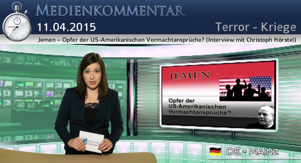 Ist Jemen ein Opfer der US-Amerikanischen Vormachtansprüche? Mit dieser Frage heiße ich Sie herzlich Willkommen! Seit der Nacht auf den 26.März 2015 bombardieren Saudi-Arabien und neun weitere sunnitische Länder Stellungen und Waffenlager der sogenannten schiitischen „Huthi-Rebellen“ im Jemen. Laut Medienberichten soll Saudi-Arabien für den Angriff auf Jemen 100 Flugzeuge und 150 000 Soldaten bereithalten. Die Huthis kontrollieren seit letztem September die Hauptstadt Sanaa. Teilweise besetzten sie Aden, die zweitgrößte Stadt des Landes, in das sie am 5. März erneut vordrangen. Wegen ihrer Lage am Zugang zum Roten Meer ist Aden von strategischer Bedeutung. Doch, wie kam es zu diesem Krieg, wer sind die Konfliktparteien und welche Interessen stecken dahinter? Hören wir hierzu die Einschätzung von dem deutschen Journalisten und Nahost-Experten Christoph Hörstel. Wir zeigen Ihnen nun einen Ausschnitt aus einem Interview mit Christoph Hörstel, das Frank Höfer am 24 März 2015 führte. (Interview) Wiedereinmal muss also ein Land, in ähnlicher Weise wie auch die Ukraine, der Irak oder Syrien, für globale Vormachtansprüche herhalten. Wieder einmal erweisen sich die Drahtzieher hinter der US-Regierung als Regisseure, ohne deren Billigung auch der Jemen-Krieg nicht stattfinden würde. Verehrte Zuschauer, wie lange lässt sich die Weltgemeinschaft das noch bieten?