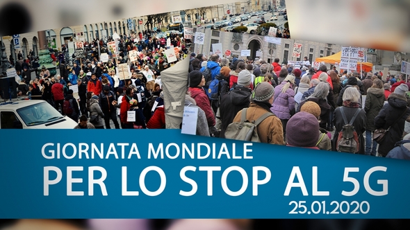 Ciao, sono Julia. Sono qui dal vivo San Gallo, perché oggi, il 25 gennaio, è la giornata mondiale di protesta contro il 5G. Proprio come qui, migliaia di persone si riuniscono in oltre 30 Paesi del mondo e in oltre 220 località per protestare contro l'introduzione della quinta generazione di telefonia mobile. Chiedono che il 5G venga fermato, proteggendo così le persone e l'ambiente dai pericoli di questa tecnologia. È un grande giorno in cui persone di tutto il mondo, si riuniscono e si formano come uno stormo di uccelli pronto a partire. Ciò che sta accadendo oggi è segno che la popolazione si sta svegliando e sta facendo qualcosa contro il 5G. Gli iniziatori delle proteste in Svizzera, "Stop 5G Svizzera", scrivono sulla loro homepage che gli enormi picchi di potenza del 5G superano di molto i valori limite. Però sugli effetti del 5G sulla salute non sono ancora stati fatti studi! Tuttavia, esistono persone già colpite, che hanno avuto le prime esperienze con esso. Ad esempio, ci sono testimonianze di cittadini di Ginevra che, dopo l’installazione di un'antenna 5G vicino casa loro, soffrono di insonnia, tinito, mal di testa e si sentono come se vivessero in un forno a microonde. Anche una donna di Glarona riferisce una sensazione di bruciore sulla pelle e gravi aritmie cardiache, entrando nell'area in cui si sperimenta il 5G. Per questi motivi, i cittadini riuniti chiedono azioni preventive per gli esseri umani di oggi e le generazioni a venire. Aiutateci informandovi e diventando attivi.