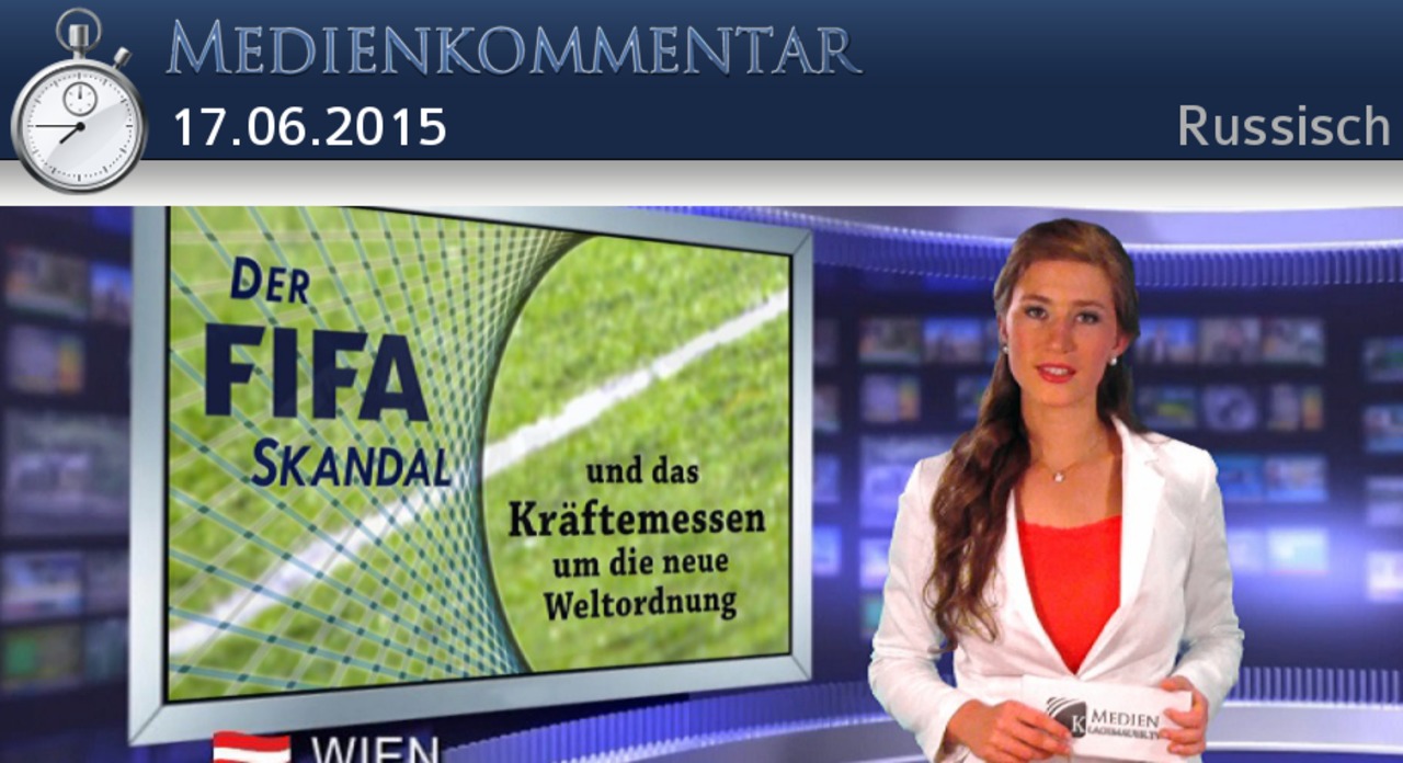 Уважаемые дамы и господа, сегодня наш медиакомментарий посвящен так называемому ФИФА скандалу. Международную организацию футбола уже давно обвиняют в сильно распространившейся коррупции. Это относится к кандидатам на проведение мирового первенства, активностям маркетинга и правам на телевещание. Скандал разразился, когда 27 мая 2015 года в Цюрихе было арестовано семь сотрудников ФИФА. Это произошло по просьбе министерства юстиции США, которое обвинило арестованных в отмывании денег и коррупции. Но в нашей передаче сегодня мы не хотим заниматься обвинениями в коррупции. Ведь, как комментировал бывший советник Швейцарской Конфедерации Кристоф Блохер в газете „Sonntagsblick“, я цитирую: „Ведь уже давно известно, что интернациональные организации как ФИФА предрасположены к коррупции. Это относится и к другим, например, ООН, ЕС и организациям по оказании помощи развивающимся странам и т. д.“ В сегодняшней передаче мы опять пойдём за красной нитью передачи: „Биполярно, монополярно или мультиполярно? – Сопоставление сил за новый мировой порядок (НМП)“. Чтобы иметь основу, мы советуем посмотреть эту передачу. В ней мы установили, что на мировой арене происходит сопоставление сил между представителями двух различных мировоззрений. Но на этот раз речь идёт не о сопоставлении сил, как в эру холодной войны между Западом и Востоком под руководством США и Советского Союза или России. На этот раз отличие в первую очередь не в географическом положении страны. Речь здесь идёт больше о том, высказывается ли какое-либо правительство за монополярный мировой порядок под руководством США или же за мультиполярный мировой порядок с равными партнёрами. Эта модель – за или против монополярного мирового порядка – кажется, уже не вырисовывается только на государственном уровне, но и у неправительственных организаций, сокращённо НПО. Посмотрим же теперь на ФИФА скандал под этим углом зрения: Так в „Deutschen Wirtschafts Nachrichten“ (DWN) от 1июня можно было прочитать, „что организация структуры ФИФА следует идее мультиполярного мирового порядка“. Поэтому большие и богатые организации в сравнении, не имеют большего влияния, чем маленькие. Этот принцип организации уже давно мешает американцам. Я цитирую DWN: „ФИФА является одной из немногих независимых международных организаций, которая не обговаривает своё финансирование с США. Примерно, как МВФ (международный валютный фонд) или международный банк, ФИФА раздаёт миллиарды на различные проекты в мире. Но иначе как в больших финансовых учреждениях в ФИФА американцы не играют решающей роли“. Есть ещё что-то, что, кажется, не подходит правительству США, так как это стоит противоположно его пониманию монополярного мирового порядка: это запланированный на 2018 год чемпионат мира по футболу в России. Так российский президент Путин сказал, что он абсолютно уверен в том, что арест сотрудников ФИФА за два дня до выборов президента ФИФА, является попыткой помешать тому, чтобы Зепп Блаттер снова был избран президентом ФИФА. На Блаттера было оказано давление, чтобы „заставить его отнять у России право на проведение чемпионата мира по футболу 2018 года“ – сказал Путин. Именно этого требовал американский сенатор Джон МкКеин за день до облавы в Цюрихе. Если бы России разрешили организовать этот турнир, то это противоречило бы инт