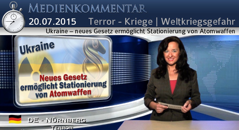 Meine Damen und Herren, guten Abend. Im Schatten der griechischen Krise schwelt der Konflikt in der Ostukraine weiter. Das Waffenstillstandsabkommen von Minsk bleibt brüchig. Gemäß Peter Gysling, dem Moskau-Korrespondenten des Schweizer Radio und Fernsehens (SRF) würden sich weder die Regierungstruppen noch die sogenannten „prorussischen Separatisten“ an die Vereinbarungen von Minsk halten. Mehr noch: Beide Seiten brächten wieder schwere Waffen an die Kriegsfront zurück. Dass es der ukrainischen Regierung nicht wirklich um die Einhaltung des Waffenstillstandsabkommens geht, lässt auch SRF durchblicken. So würde zwar im Parlament über mehr Autonomie für die Gebiete Lugansk und Donezk verhandelt, doch schaue man die konkrete Situation an, tue sich „überhaupt nichts“. In der Praxis scheint die ukrainische Regierung derzeit vielmehr damit beschäftigt zu sein, die außenpolitischen Ziele der USA in Bezug auf Russland zu erfüllen. Diese Ziele formulierte nämlich der Direktor der renommierten US-Denkfabrik „Stratfor“ George Friedman im März 2015 folgendermaßen, ich zitiere: „Es geht darum, einen immer engeren politischen und militärischen Sicherheitsgürtel um Russland und China zu bilden.“ Und genau das scheint nun u.a. in der Ukraine abzulaufen. Im Juni hat nämlich das Parlament in der Ukraine ein neues Gesetz beschlossen, über – so wörtlich: „die Bedingungen der Streitkräfte anderer Staaten auf dem Territorium der Ukraine“. Das alte Gesetz wurde komplett auf den Konflikt mit Russland angepasst und umgeschrieben. So galt im alten Gesetz für Stationierungsbedingungen, dass sie nur zeitlich „angemessen begrenzt“ sein müssen. In der neuen Fassung muss jedoch „das Ziel der Stationierung“ erreicht werden. Wobei das Ziel, umgemünzt auf die derzeitige Lage, wohl ein Zurückerlangen der 2014 an Russland angeschlossenen Krim bedeuten würde. Eine weitere Änderung ist, dass neben den Vereinten Nationen, fortan auch die Europäische Union Truppen im Land stationieren darf. Die brisanteste Änderung betrifft allerdings die Stationierung von Atomwaffen, die fortan laut Artikel 4 gestattet ist, ich zitiere: „[P]otentielle Träger von Kernwaffen und anderen Arten von Massenvernichtungswaffen werden nach internationalen Abkommen der Ukraine für eine Stationierung auf Zeit in der Ukraine erlaubt, sofern die geeignete Steuerung hinsichtlich der Stationierung auf dem Territorium der Ukraine durch die Ukraine selbst gesichert ist.“ Von mehreren Kommentatoren wird das Gesetz als eine klare Präzisierung und Erweiterung der militärischen Möglichkeiten des Westens gegenüber Russland gesehen. So nah an der russischen Grenze hätte der Westen bis anhin kaum militärische und vor allem nukleare Möglichkeiten gehabt. Der sogenannte „Sicherheitsgürtel“ um Russland wird unübersehbar immer enger. Dabei dürfte es sich kaum um einen bloßen „Sicherheitsgürtel“ handeln, sondern um eine gezielte Provokation und eine Eindämmung des russisch-chinesischen Einflusses. Dies schilderte der Journalist Peter Scholl-Latour bereits 2007 in seinem Buch „Russland im Zangengriff“. Bezeichnenderweise hat auch die Regierung Japans am 16.Juli 2015 ein neues Gesetz beschlossen, das – erstmals seit dem 2. Weltkrieg – Auslandseinsätze japanischer Soldaten ermöglichen soll. Die Regierung sieht dies als Antwort auf die wachsende Militärmacht China. Dass China genauso wie Russland provoziert und in die Enge getrieben werden soll, machen die Gebietsstreitigkeiten im südchinesischen Meer klar. So sagte der neue Flotten-Befehlshaber der US-Navy Admiral Scott Swift gegenüber Reportern, dass die USA für „militärische Aktionen“ bereit seien. Das Aufrüsten der USA und ihrer Verbündeten gegenüber Russland und China lässt nichts Gutes erahnen. Das Konfliktpotential, und damit verbunden die Gefahr eines weiteren Weltkrieges, nehmen zu – und zwar durch gezielte Provokationen der USA, z.B durch Verdrehungen und Lügen. Es bleibt nur noch zu warten, bis die USA einen Krieg provozieren oder auf Grund einer Lüge auslösen wird. Deshalb helfen Sie bitte mit, liebe Zuschauer, diese Zusammenhänge weiter zu verbreiten, damit jeder mögliche Kriegsgrund als Lüge entlarvt und frühzeitig vereitelt wird. Danke Ihnen und einen guten Abend.